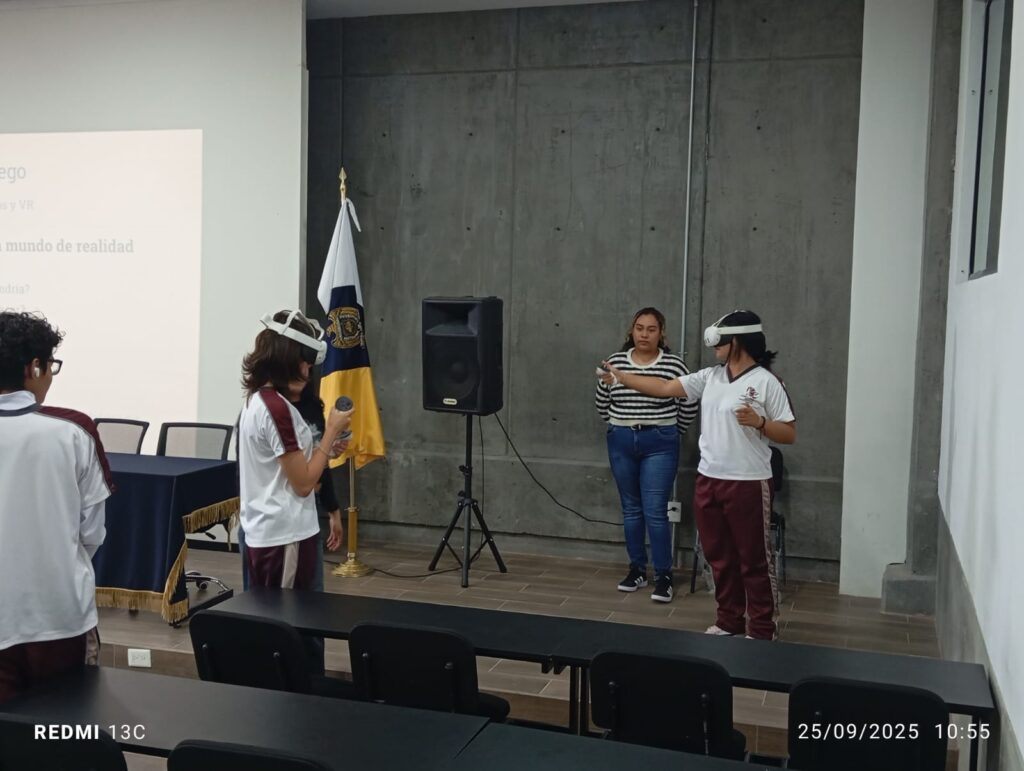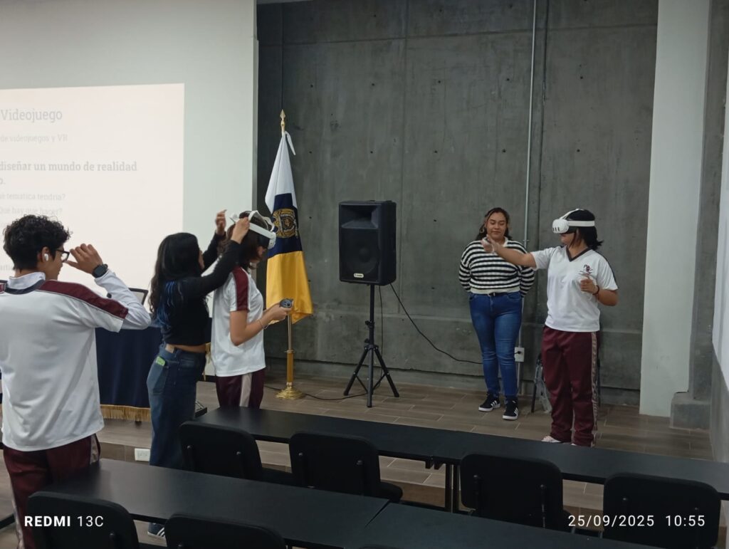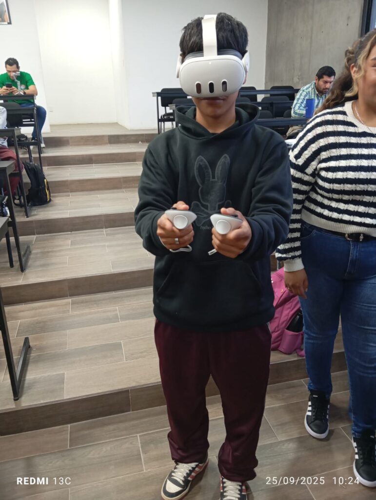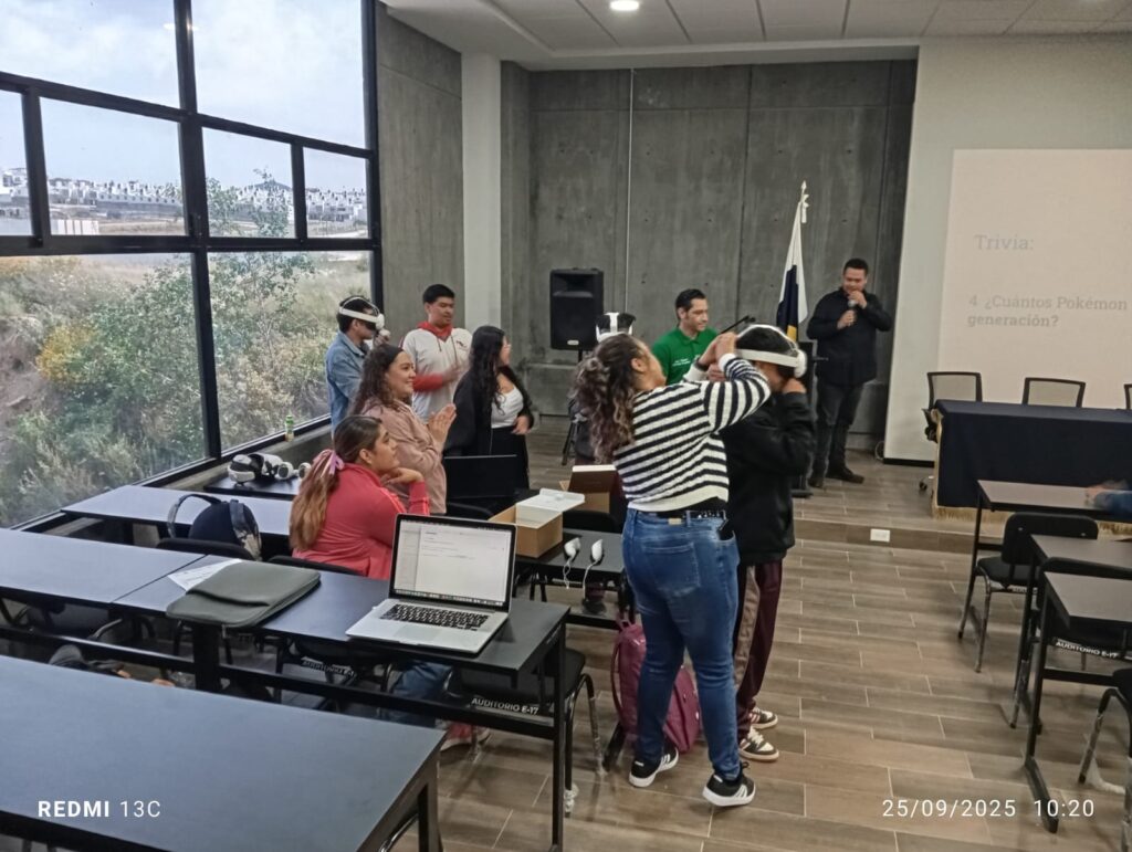 En la actividad organizada por el coordinador del Área de Ingenierías y Tecnología, Carlos Eric Galván Tejada, las y los jóvenes participaron en diversas prácticas. Por ejemplo, en el Laboratorio de Realidad Virtual, se ofreció un taller-conferencia que incluyó tres fases: una presentación inicial sobre la carrera, sus áreas de estudio y aplicaciones de la VR y los videojuegos; una trivia con preguntas abiertas y numéricas para seleccionar alumnos que probarían los visores de VR Meta Quest; y una dinámica grupal creativa y participativa sobre como diseñar mundos virtuales o videojuegos, pensada para mantener la atención del resto de los estudiantes y elegir más participantes para usar los meta quest.