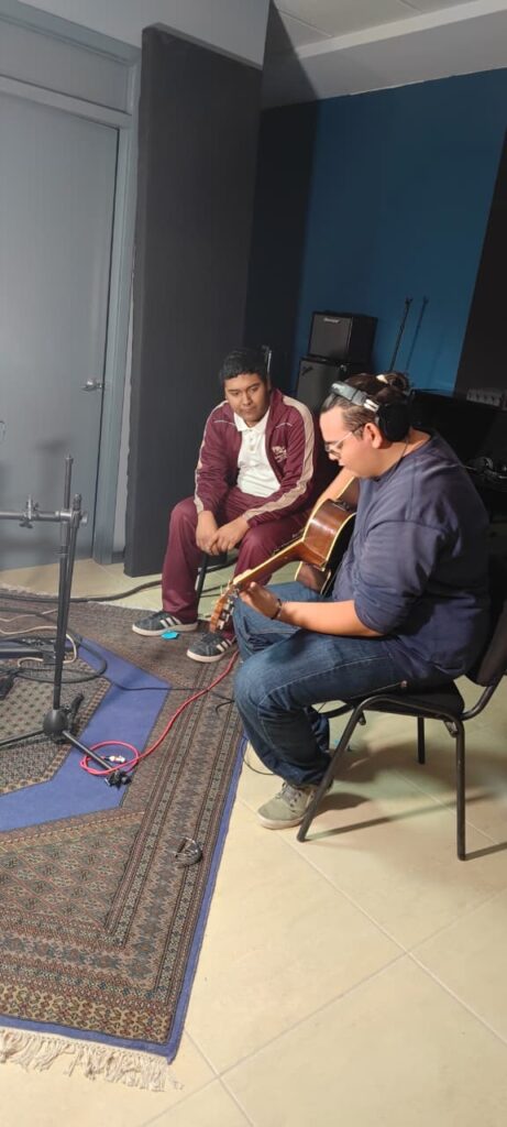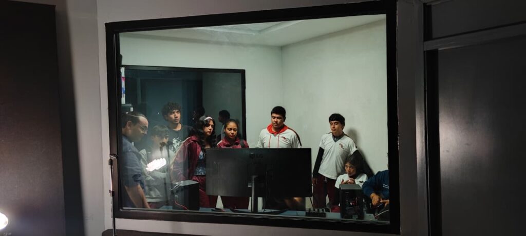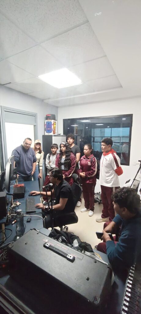 Durante la visita al Laboratorio de Producción de Medios Digitales, las y los estudiantes tuvieron la oportunidad de explorar las instalaciones y familiarizarse con el equipo de grabación y producción. Como parte de la práctica, realizaron la grabación de una canción, actividad que les permitió conocer el proceso de producción y postproducción musical, aplicando sus conocimientos en un entorno real.
