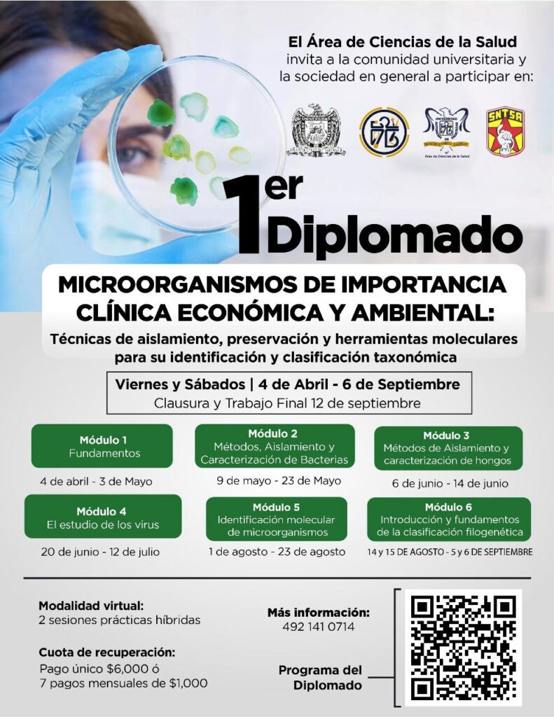 El Área de Ciencias de la Salud convoca a todos los interesados al 1er. Diplomado en “Microorganismos de importancia clínica económica y ambiental”.