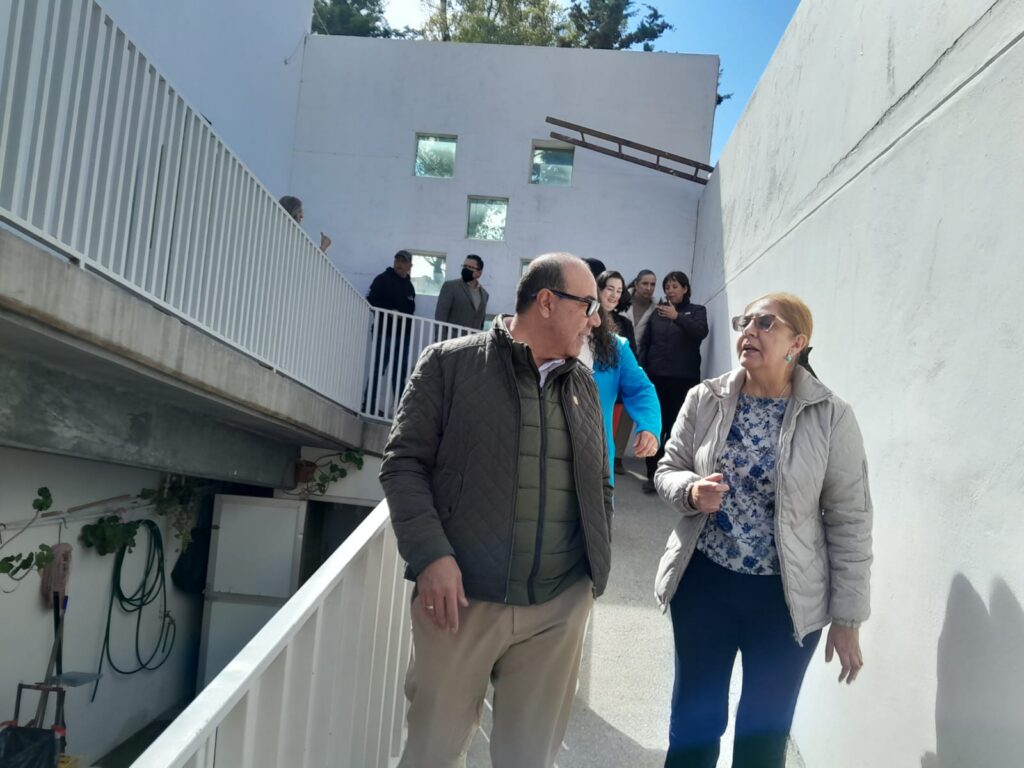 La visita inició bajo la guía de la directora del centro, Alejandra del Carmen Mata Ramírez, quien condujo a los funcionarios por los salones de maternal, preescolar, educación física, así como por los comedores, el área de juegos y otros espacios que forman parte de la formación integral de las y los pequeños universitarios.