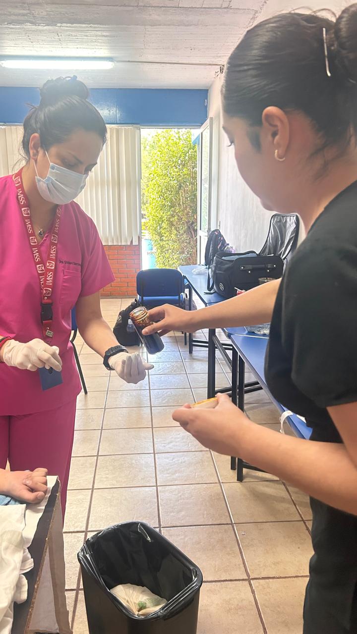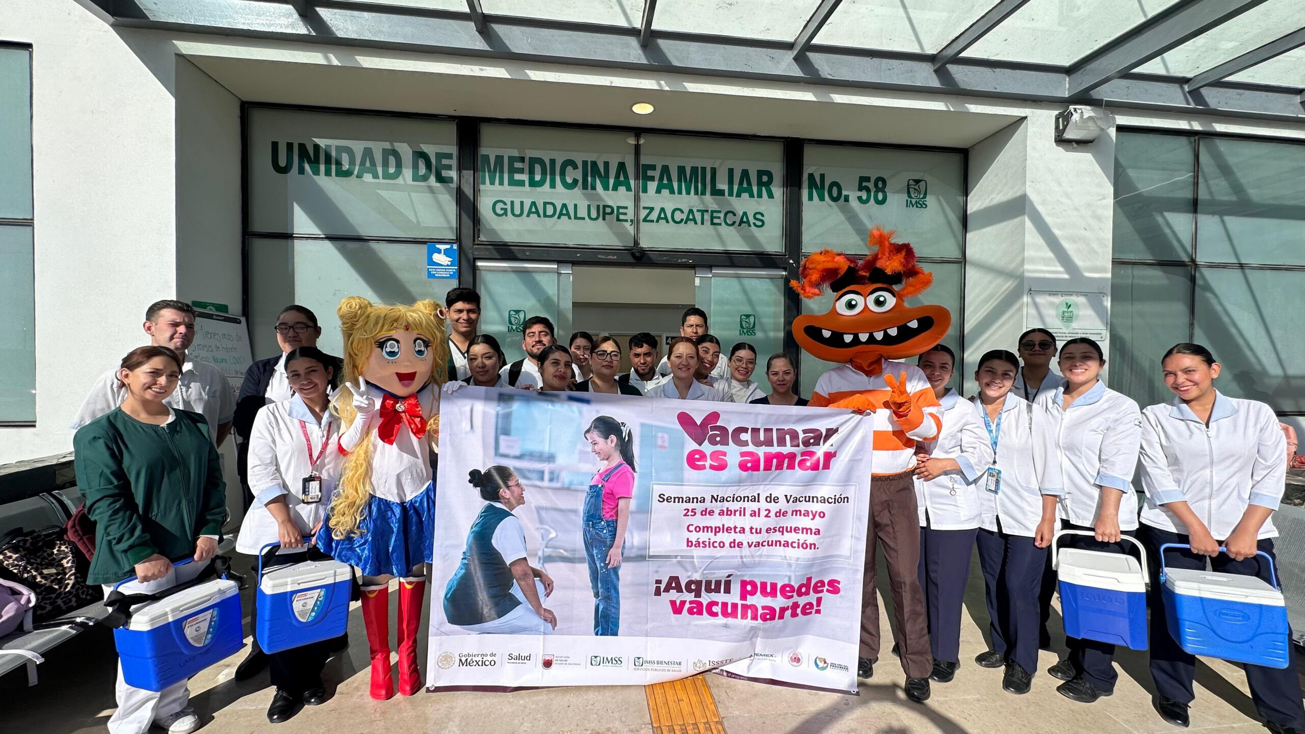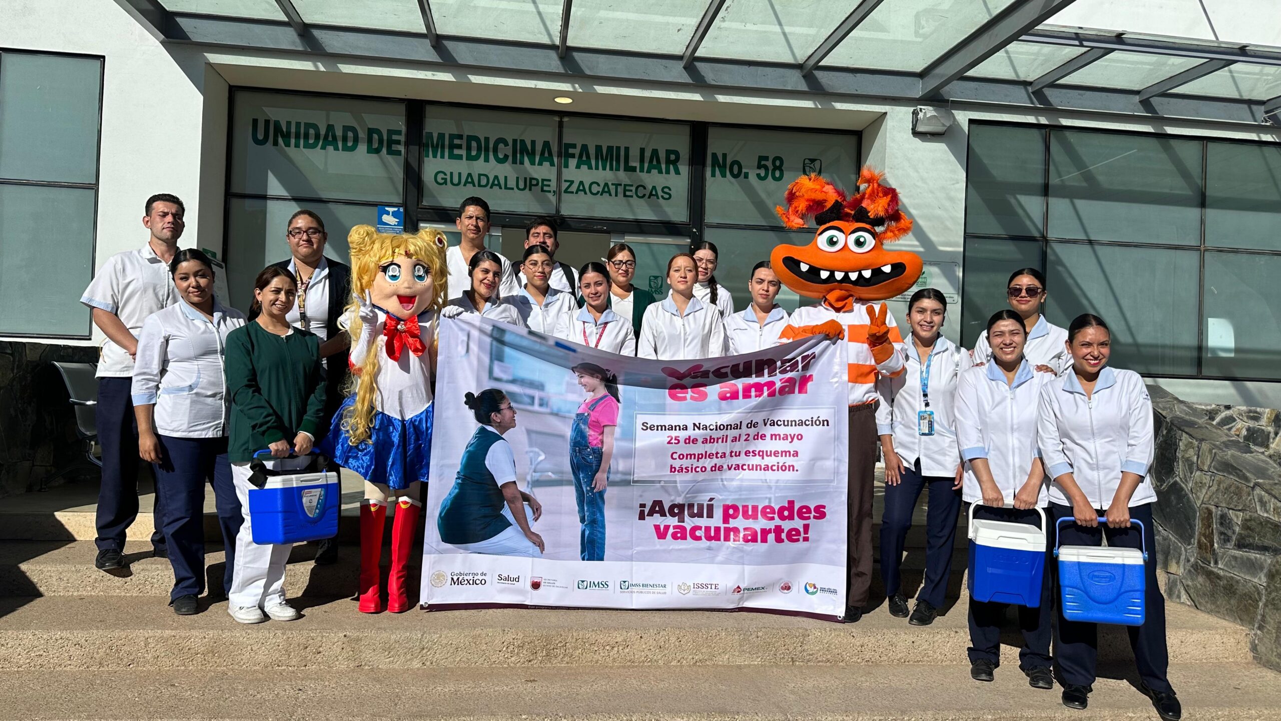 La Unidad Académica de Enfermería de la Universidad Autónoma de Zacatecas (UAE-UAZ) participó este día en la 𝐉𝐨𝐫𝐧𝐚𝐝𝐚 𝐝𝐞 𝐕𝐚𝐜𝐮𝐧𝐚𝐜𝐢ó𝐧 𝐫𝐞𝐚𝐥𝐢𝐳𝐚𝐝𝐚 𝐞𝐧 𝐥𝐚 𝐂𝐥í𝐧𝐢𝐜𝐚 𝟓𝟖 𝐝𝐞𝐥 𝐈𝐌𝐒𝐒, donde alumnos de la licenciatura colaboraron en las labores de atención y apoyo a la comunidad. Esta actividad refuerza la formación profesional de los estudiantes y consolida la vinculación de la UAZ con las instituciones de salud en beneficio de la sociedad.