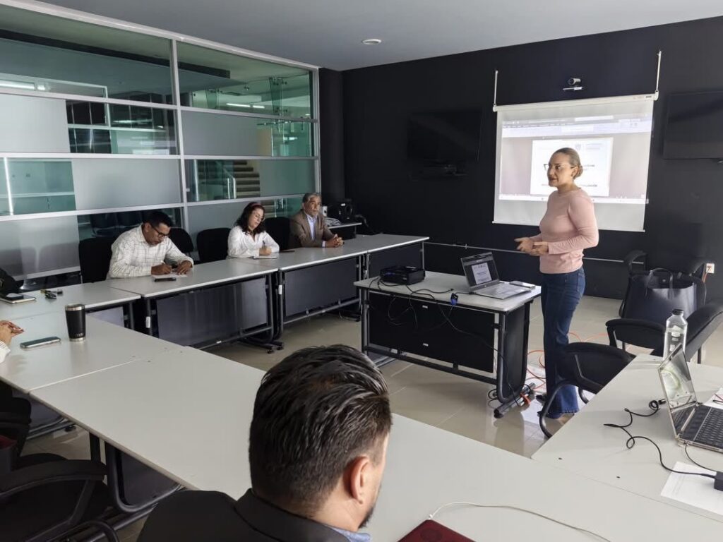 La 𝐜𝐨𝐨𝐫𝐝𝐢𝐧𝐚𝐝𝐨𝐫𝐚 𝐝𝐞 𝐃𝐨𝐜𝐞𝐧𝐜𝐢𝐚, 𝐑𝐞𝐠𝐢𝐧𝐚 𝐂𝐨𝐦𝐩𝐞á𝐧 𝐆𝐨𝐧𝐳á𝐥𝐞𝐳 y la 𝐬𝐮𝐛𝐜𝐨𝐨𝐫𝐝𝐢𝐧𝐚𝐝𝐨𝐫𝐚 𝐝𝐞 𝐀𝐜𝐭𝐮𝐚𝐥𝐢𝐳𝐚𝐜𝐢ó𝐧 𝐲 𝐅𝐨𝐫𝐦𝐚𝐜𝐢ó𝐧 𝐃𝐨𝐜𝐞𝐧𝐭𝐞, 𝐍𝐮𝐛𝐢𝐚 𝐂𝐡á𝐯𝐞𝐳 𝐋𝐚𝐦𝐚𝐬, sostuvieron el día de hoy una reunión de trabajo en la sala de juntas de la Secretaría Académica, con el objetivo de dar a conocer el programa e invitar a realizar el diagnóstico de necesidades de formación docente en esta área.