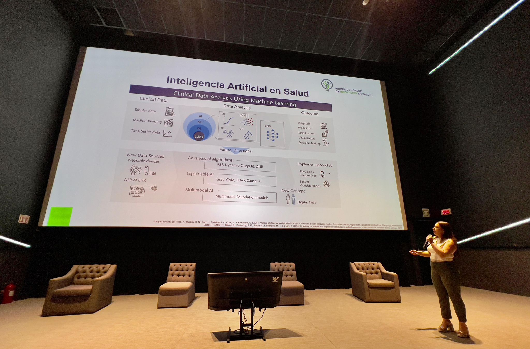 Durante su intervención titulada “Inteligencia Artificial y Bases de Datos: Claves para el Desarrollo de Modelos Predictivos en la Salud”, Acosta Jiménez destacó la importancia de contar con datos clínicos de alta calidad y explicó cómo el uso estratégico de la inteligencia artificial permite diseñar herramientas predictivas robustas que fortalecen la toma de decisiones médicas basadas en evidencia.