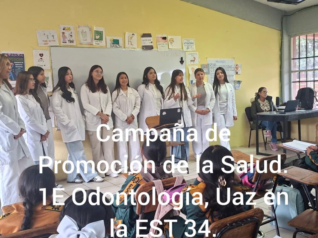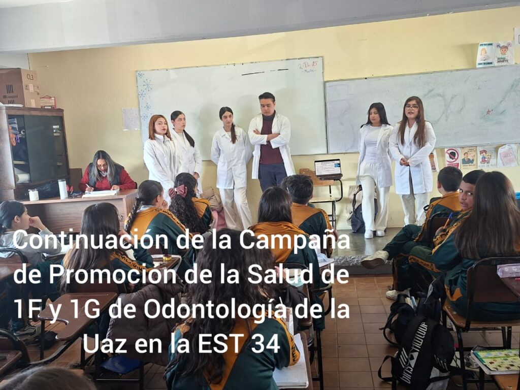 Con el propósito de sensibilizar a la comunidad escolar sobre los factores biológicos y sociales que influyen en la aparición de enfermedades, alumnos de primer año de los grupos E, F y G de la carrera de Médico Cirujano Dentista de la Unidad Académica de Odontología de la Universidad Autónoma de Zacatecas (UAZ), bajo la orientación del maestro Ricardo Aarón Castillo Pacheco, llevaron a cabo una Campaña de Promoción de la Salud en la Escuela Secundaria Técnica No. 34 “Francisco Tenamaxtle”.
