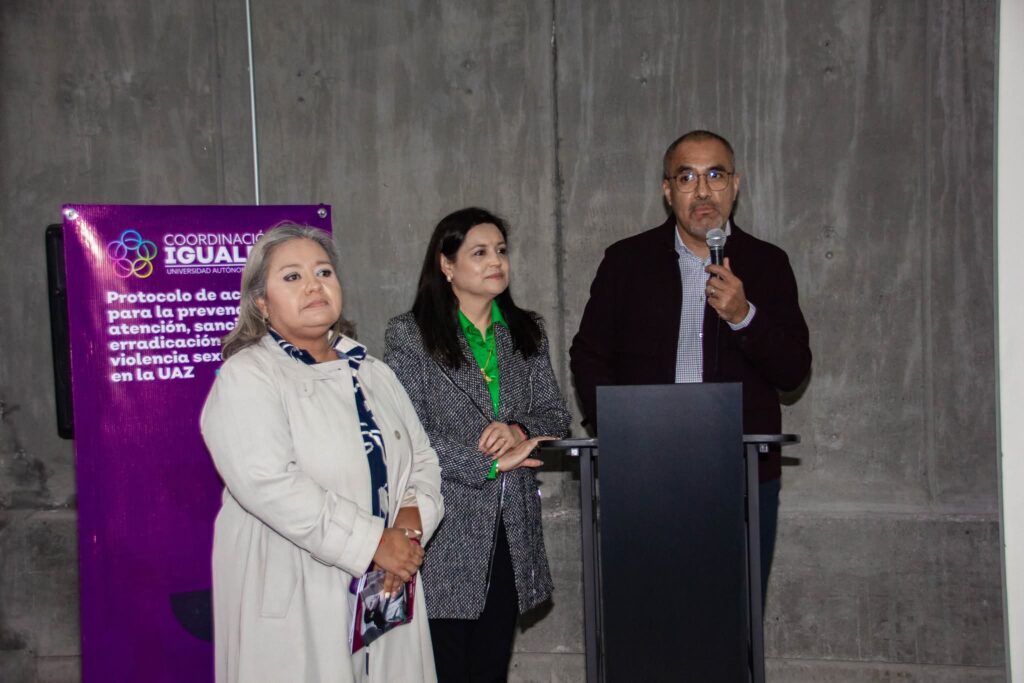 En este sentido, dio a conocer que la estructura encargada de implementar los mecanismos de atención y prevención estará conformada por la Coordinación de Igualdad, la Unidad Especializada de Atención a la Violencia Sexual y los Comités de Primer Contacto, los cuales se integrarán en cada área académica y administrativa de la UAZ, con representación de los tres sectores de la institución: alumnos, docentes y administrativos.