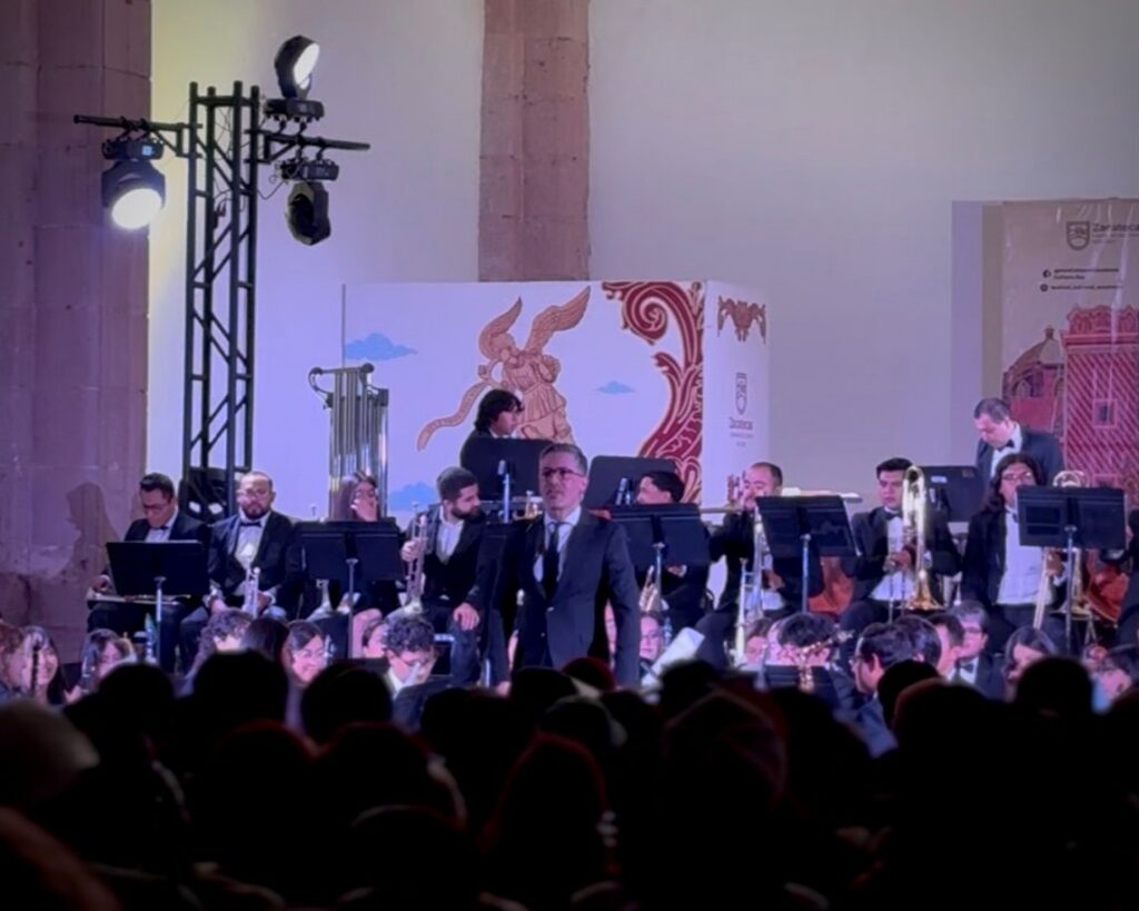 El programa abrió con la “Marcha Aréchiga”, de Fernando Villalpando, pieza representativa de patrimonio musical zacatecano, para después desplazarse hacia un repertorio internacional con obras de Jan Van der Roost, Jacob de Haan, Rossano Galante y Kayoko Goda.