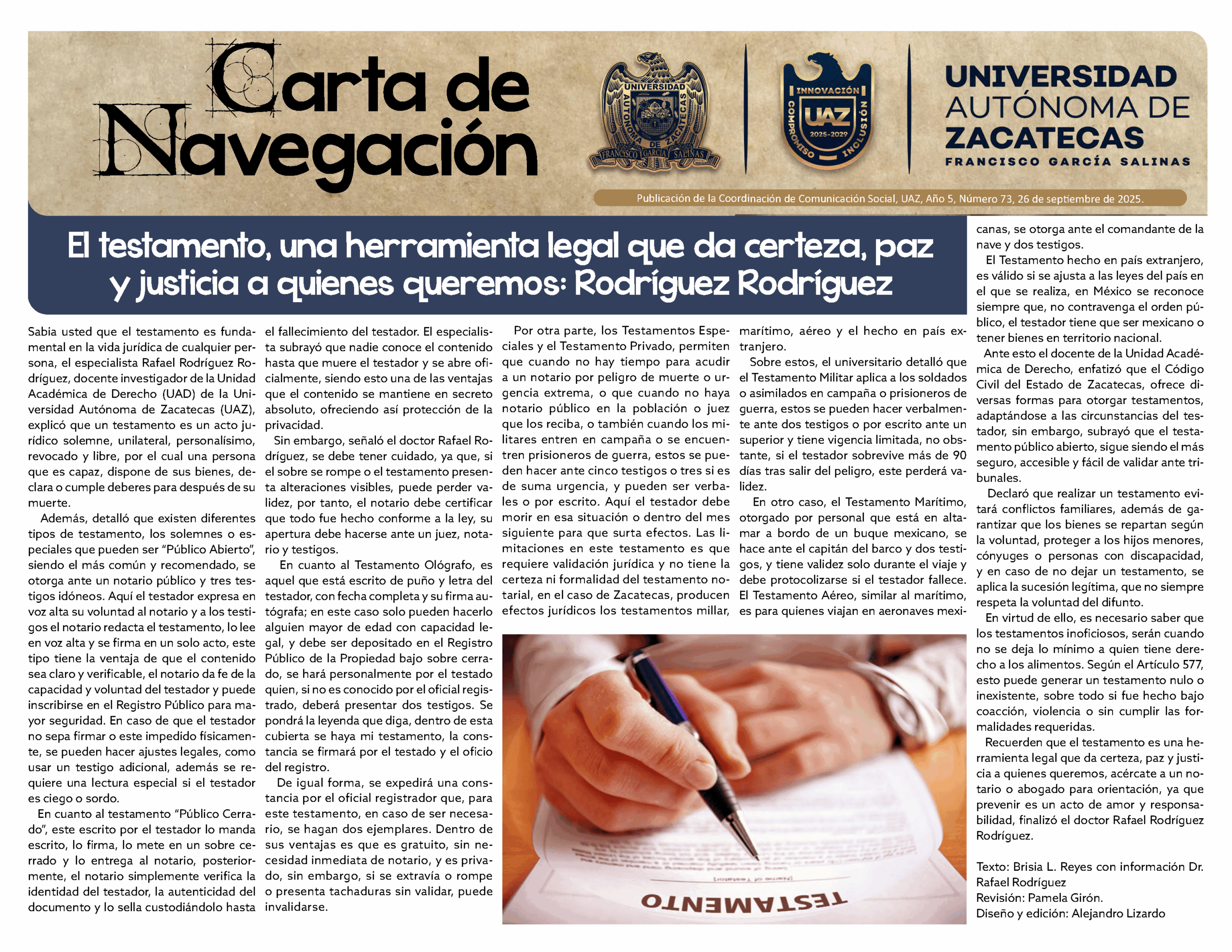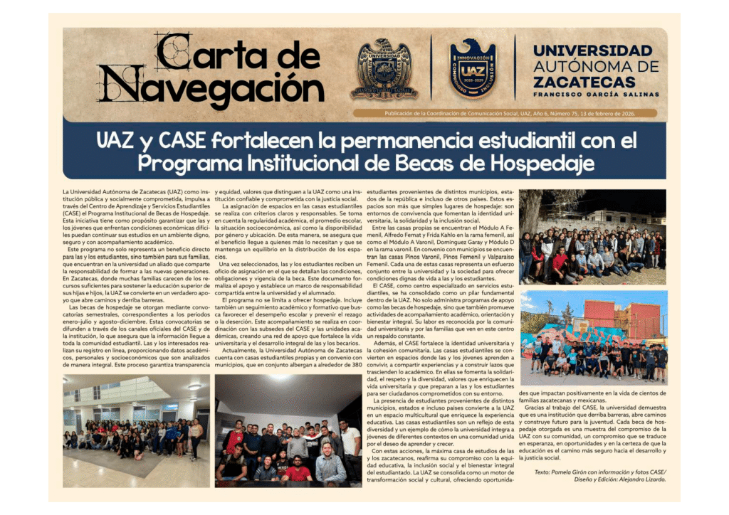 Carta de navegación Suplemento electrónico que contiene notas destacadas y/o artículos de investigación y la academia universitaria.
