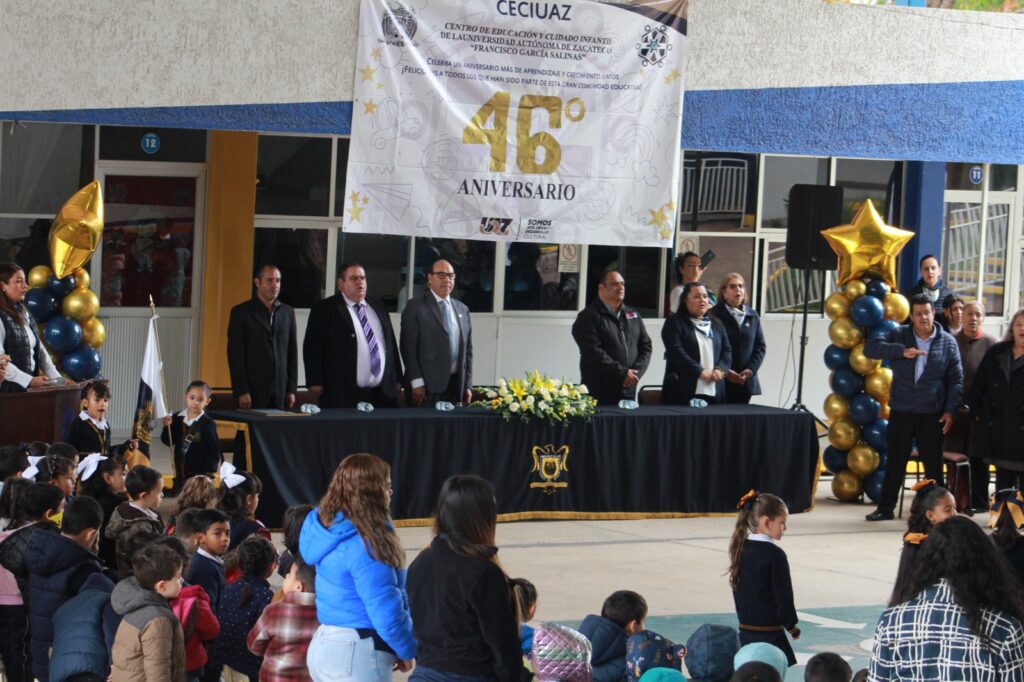 El Centro Educativo de Cuidado Infantil de la Universidad Autónoma de Zacatecas (CECIUAZ) conmemoró su 46º aniversario, reafirmando su vocación de servicio al acompañar a madres y padres universitarios en el desarrollo integral de sus hijas e hijos en las etapas lactante, maternal y preescolar.