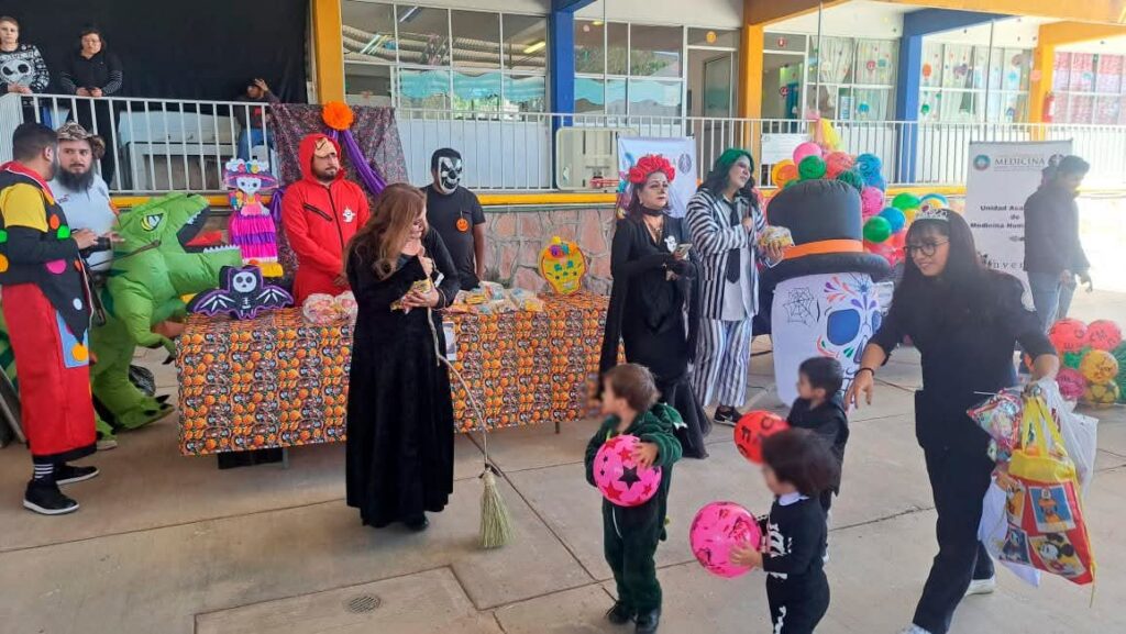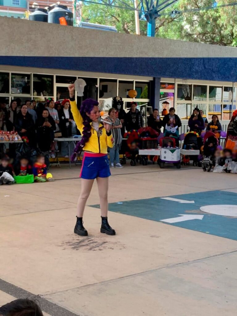 Las niñas y niños universitarios acudieron disfrazados de sus personajes y criaturas favoritas, disfrutando de un programa que incluyó una presentación especial a cargo del grupo 3° A, así como un animado concierto lleno de energía y alegría.
