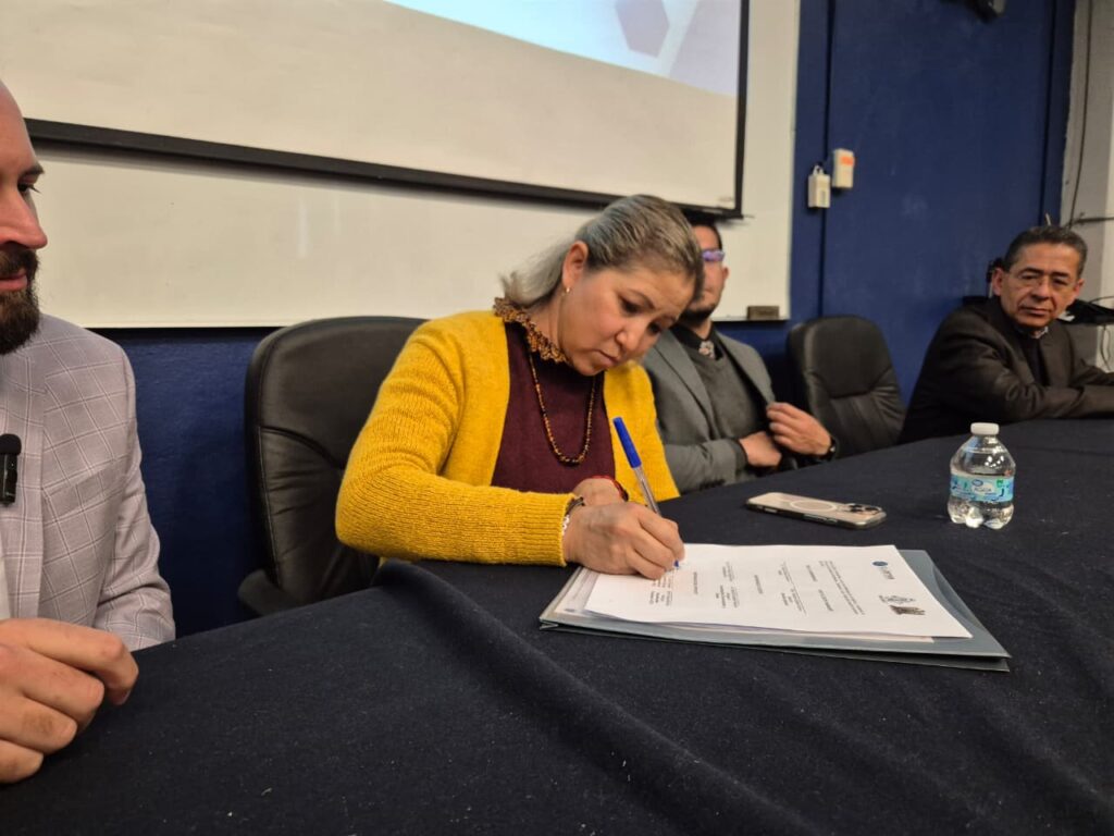 En el evento, la directora de la Unidad Académica de Ciencias Químicas, Elena Donají Ramírez Alvarado, ante la presencia de docentes y alumnos que se dieron cita en el Audiovisual del E5, celebró esta firma de convenio con este clúster del que -refirió-, traerá beneficios de gran importancia tanto para el sector docente como el estudiantil.