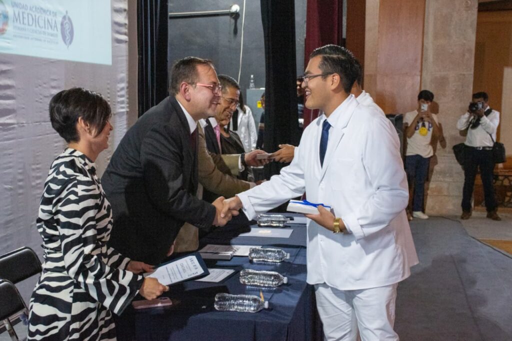 “Este momento representa un acto de unidad, equidad y justicia académica entre Medicina Zacatecas y Medicina Fresnillo”, señaló. Además, reconoció la resiliencia de docentes y estudiantes del plantel, quienes desde su fundación en 2009 han enfrentado diversos retos con fortaleza y compromiso, logrando avanzar hacia sus objetivos institucionales.