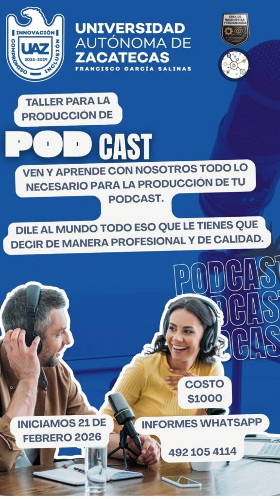 El Taller para la Producción de Podcast dará inicio el 21 de febrero de 2026 y está diseñado para quienes desean aprender a comunicar sus ideas de manera profesional mediante este formato digital, cada vez más utilizado en medios de comunicación y educación.