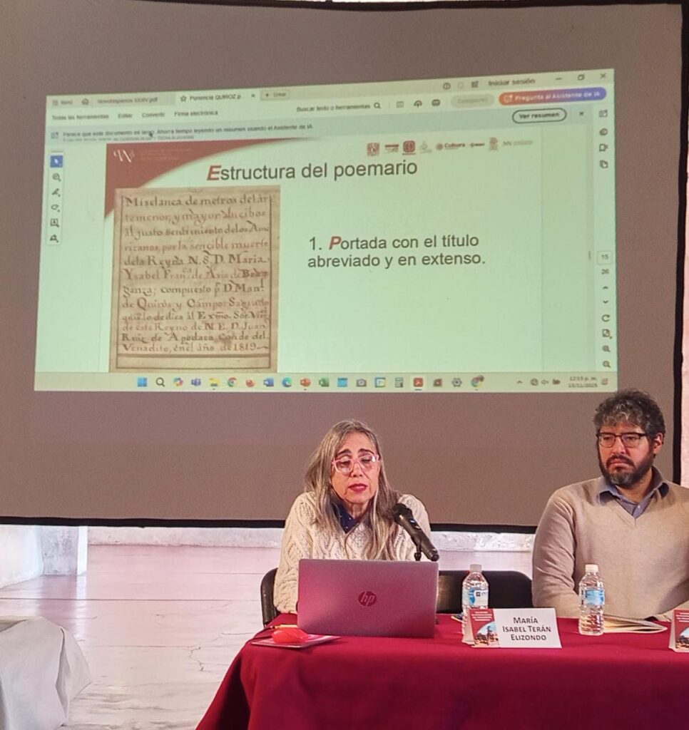 Las investigaciones presentadas abordaron una amplia gama de temas que reflejan la riqueza y diversidad del pensamiento novohispano. Se expusieron los trabajos: Un poemario inédito dedicado a la muerte de María Isabel de Braganza (1820); Tradición y ruptura y la fábula novohispana; Ley y conquista: Ginés de Sepúlveda y Alfonso de Castro; Medición acústica de la capilla abierta de Actopan. Réplica de la metodología empleada en las mediciones de una capilla abierta del siglo XVI.