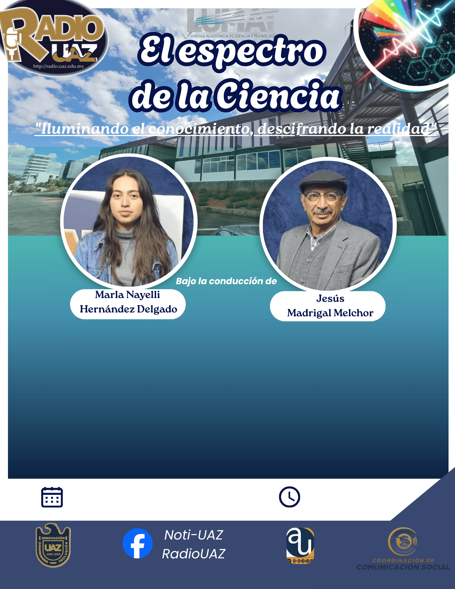 En colaboración con la Unidad Académica de Ciencia y Tecnología de la Luz y la Materia (LUMAT), este programa de divulgación científica busca acercar los temas de ciencia y tecnología a toda la sociedad zacatecana. A través de formatos accesibles, difundimos los importantes proyectos de investigación y los logros de esta unidad.
