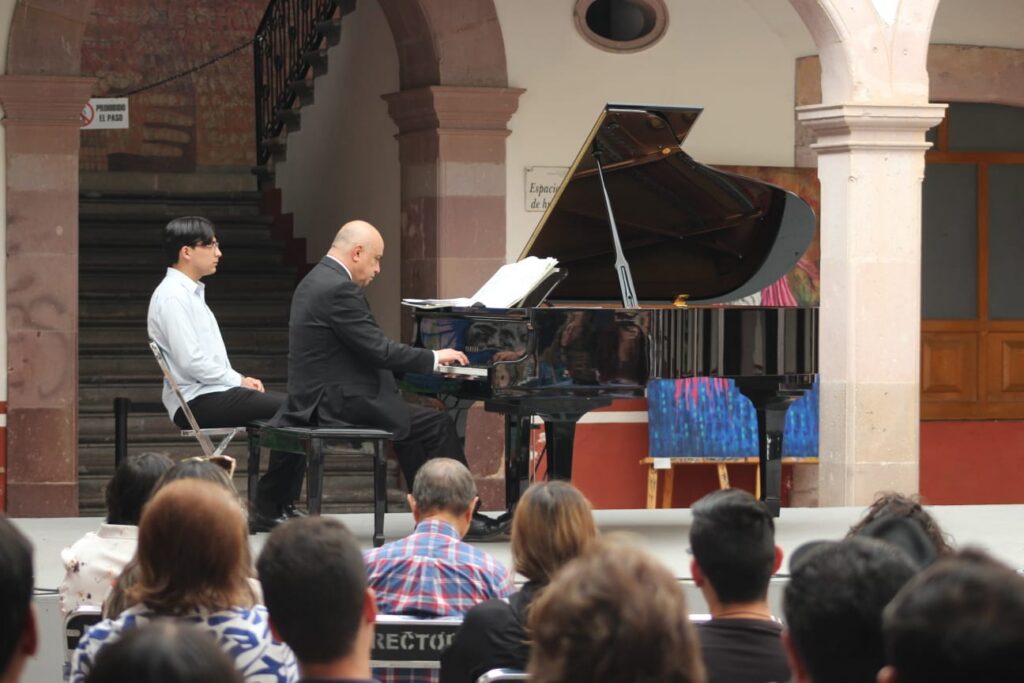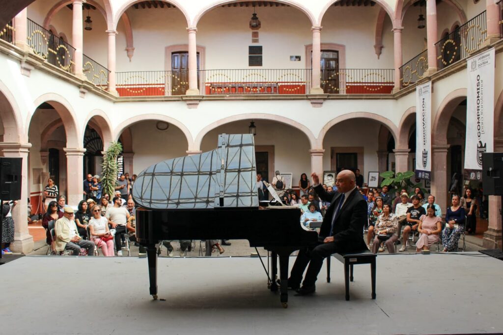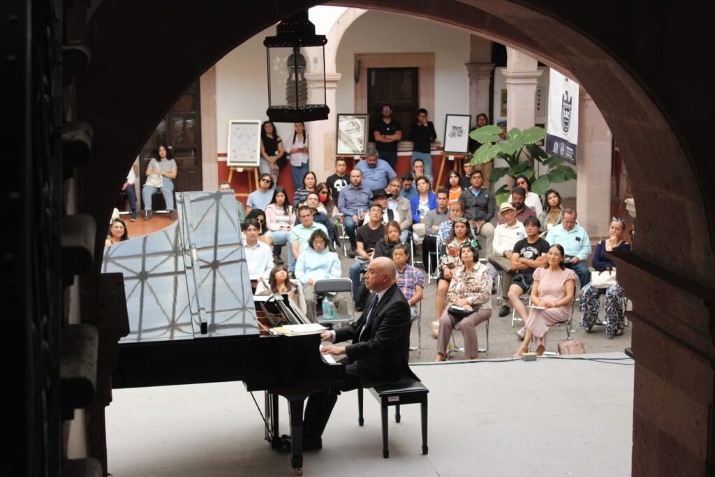 En el corazón de la Rectoría, donde la historia universitaria resuena en cada muro, el destacado pianista Alejandro Barrañón convirtió el Patio Central en un espacio de intensidad sonora y gran virtuosismo, durante su participación en el foro “Presencia Universitaria” del Festival Cultural Zacatecas.