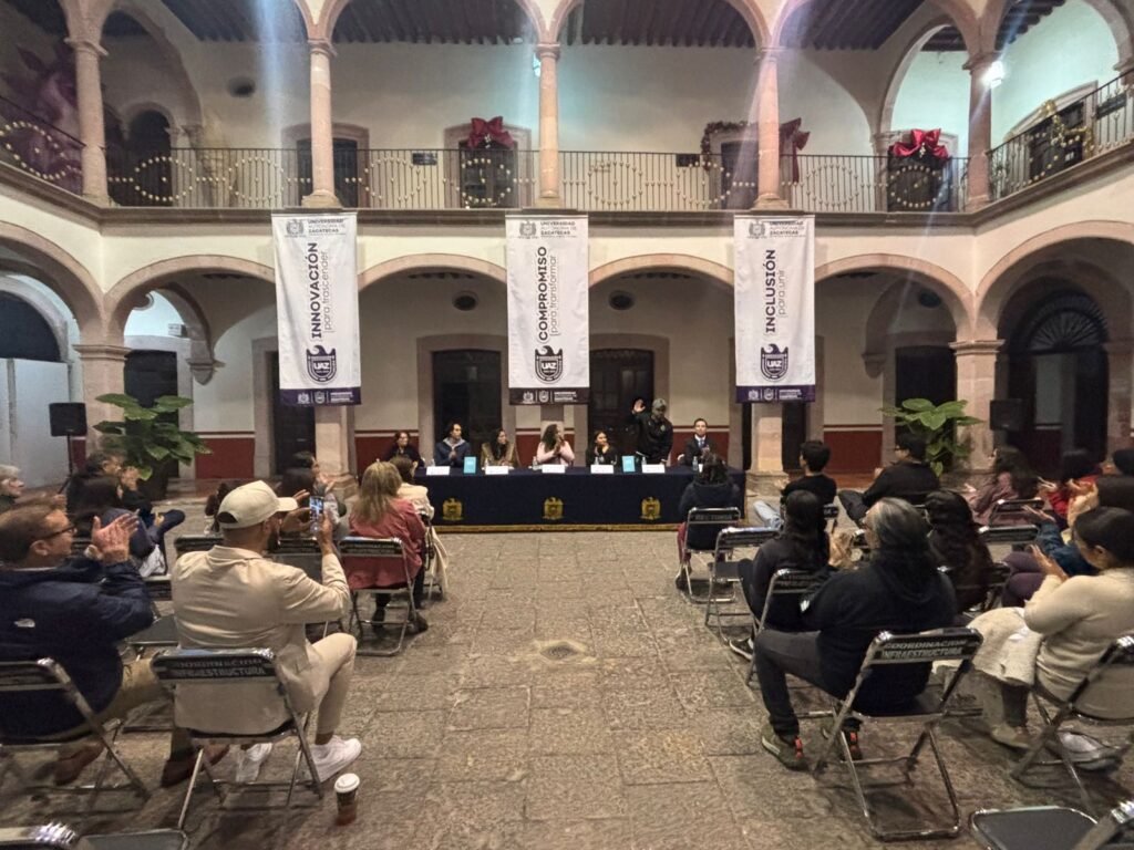 En el patio central de Rectoría se presentó la segunda edición del libro “En sus marcas, listos… ¡Ciencia! Crónicas de investigación en la cancha y deporte en el laboratorio”, obra que busca acercar el conocimiento científico al deporte. Durante el acto, la secretaria general de la Universidad Autónoma de Zacatecas (UAZ), Lorena Jiménez Sandoval, felicitó la publicación y subrayó la relevancia de contar con destacados deportistas y entrenadores zacatecanos para enriquecer la reflexión en torno al texto.
