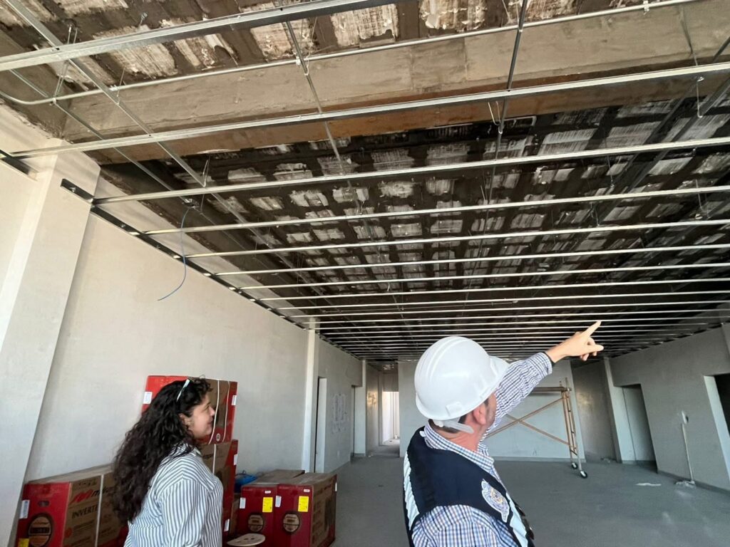 Durante el recorrido, los estudiantes analizaron trazos, registros y salidas en diferentes áreas del edificio, además de conocer los materiales empleados, como tuberías tipo conduit, cajas de registro, canalizaciones y cableado correspondiente a los sistemas de voz y datos. También se mostraron elementos relacionados con instalaciones sanitarias y los trazos previstos para la futura instalación eléctrica.