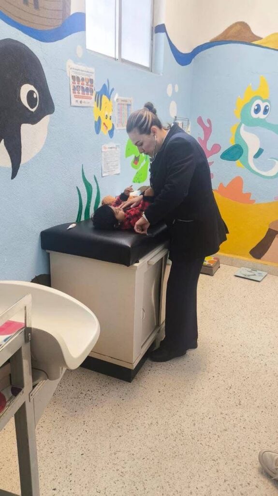 De igual manera, llevaron a cabo dinámicas de estimulación temprana para niñas y niños de 1 a 5 años de edad, además de integrarse a jornadas de vacunación masiva en una escuela primaria del estado de San Luis Potosí, contribuyendo al fortalecimiento de la salud pública.
