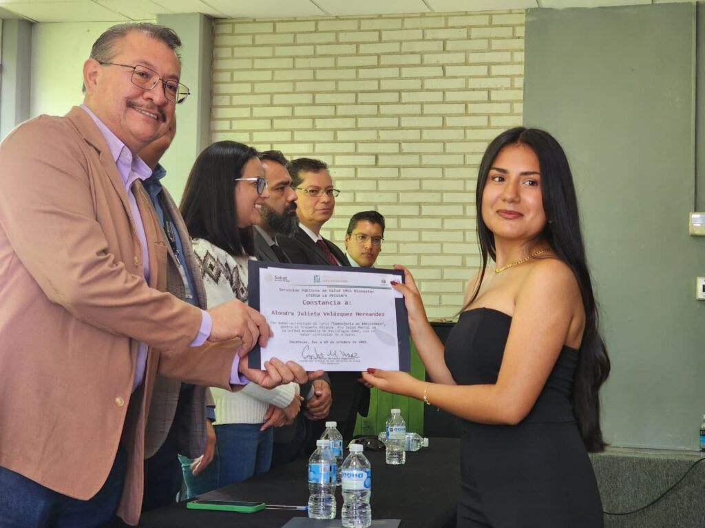 La Universidad Autónoma de Zacatecas (UAZ), a través del Cuerpo Académico “Psicología, Salud y Desarrollo Humano” (UAZ-CA-241) de la Unidad Académica de Psicología (UAP), en colaboración con la UNEME-CECOSAMA (Centros Comunitarios de Salud Mental y Adicciones), realizó la entrega de constancias de Capacitación en atención en Salud Mental a 22 alumnos, como parte del proyecto Alianza Pro Salud Mental y Desarrollo Humano.
