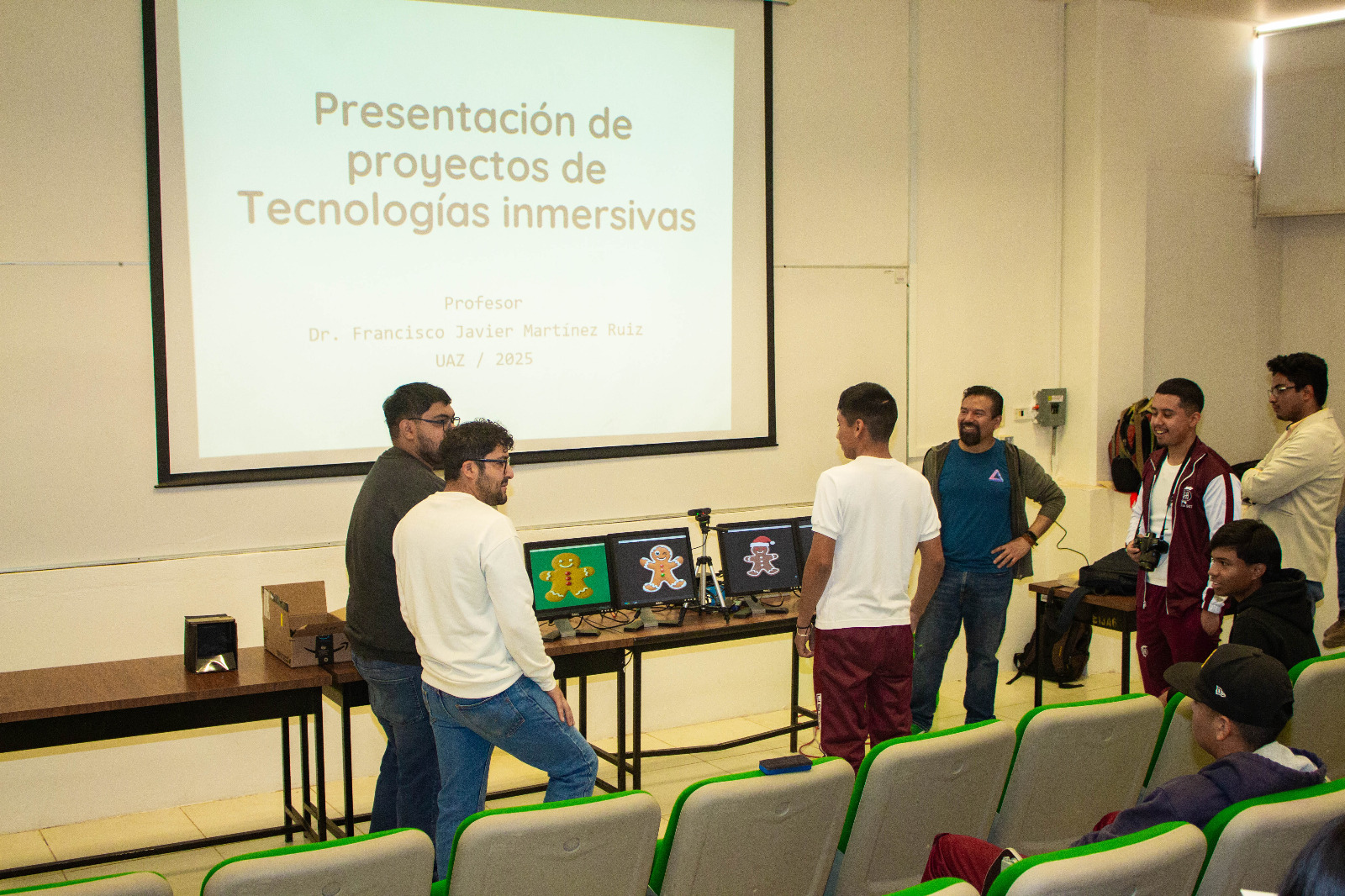 Los estudiantes de la materia optativa “Tecnologías Inmersivas”, impartida por el docente investigador del programa de Ingeniería en Computación perteneciente a la Unidad Académica de Ingeniería Eléctrica (UAIE) de la Universidad Autónoma de Zacatecas (UAZ), Francisco Javier Martínez Ruiz, realizaron una demostración de proyectos que integran realidad aumentada, realidad virtual y pseudo hologramas.