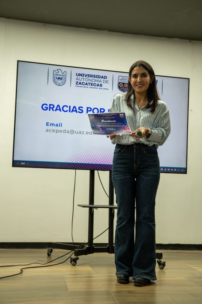 En el marco de las actividades del Hackatón Atenea, la docente investigadora de la Unidad Académica de Ingeniería Eléctrica (UAIE) de la Universidad Autónoma de Zacatecas (UAZ), Alejandra Cepeda Argüelles, impartió la conferencia titulada “De la idea al impacto: cómo transformar un problema en un proyecto”.