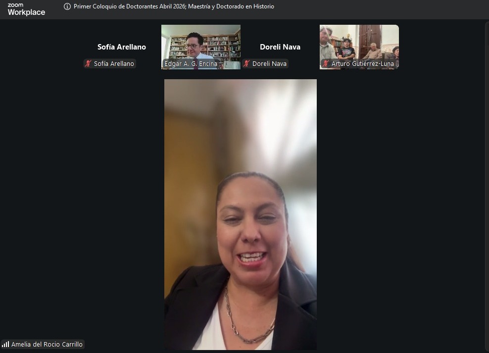 Al hacer uso de la voz, la directora de la Unidad Académica de Historia, Amelia del Rocío Carrillo Flores, reconoció el trabajo organizativo de la generación de doctorantes y destacó la relevancia de estos espacios para fortalecer la formación académica y la producción de conocimiento.
