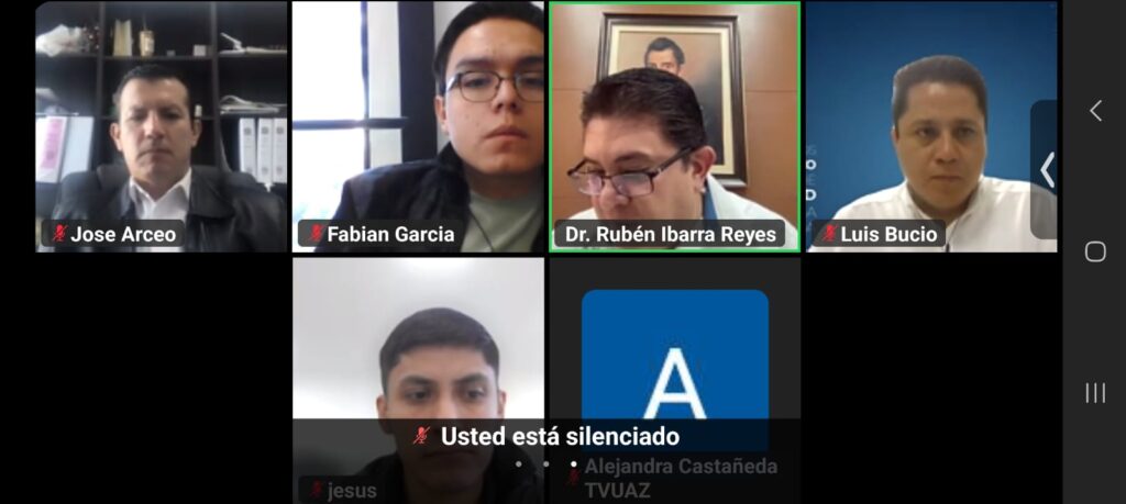 Estuvieron conectados a esta sesión virtual, el secretario académico de la UAIE, Sodel Vázquez Reyes; el secretario administrativo, José Guadalupe Arceo Olague; así como el responsable de Ingeniería en Robótica y Mecatrónica, Héctor Guerrero, y la responsable de la subsede del CASE, Nancy Delgado Salazar.