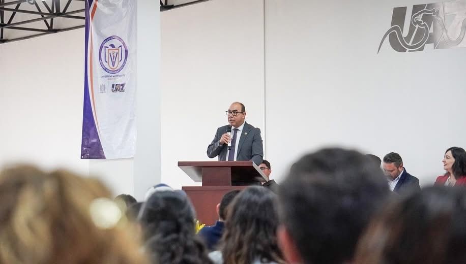 Para dar inicio a las actividades, el rector Ángel Román Gutiérrez impartió la conferencia magistral “La huella hídrica de la plata: cómo la deforestación minera virreinal configuró la vulnerabilidad zacatecana ante la sequía”.