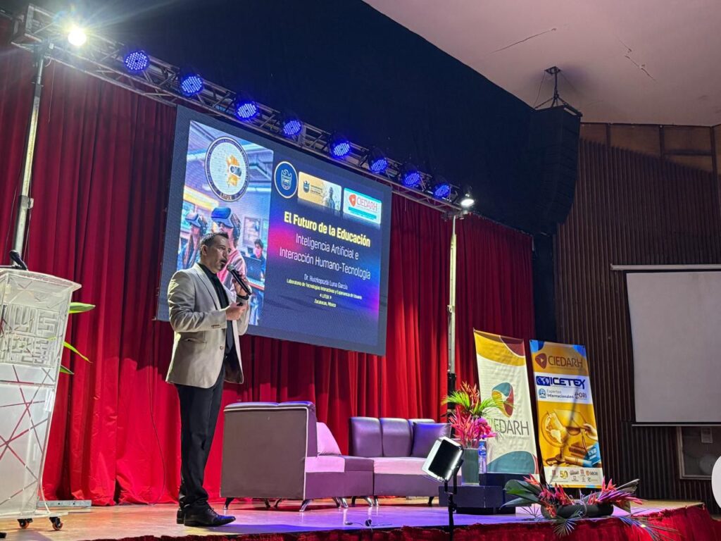 En este marco académico, el Dr. Luna impartió la Conferencia Magistral “El Futuro de la Educación: Inteligencia Artificial e Interacción Humano-Tecnología” y dirigió el taller especializado “Procesamiento y Análisis de Datos Aplicado en Educación”, consolidando la presencia de la UAZ y del LITUX como referentes en innovación educativa, inteligencia artificial y tecnologías inmersivas.