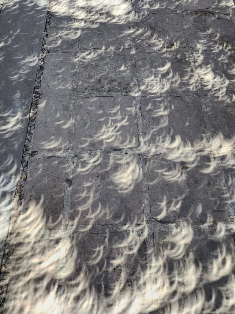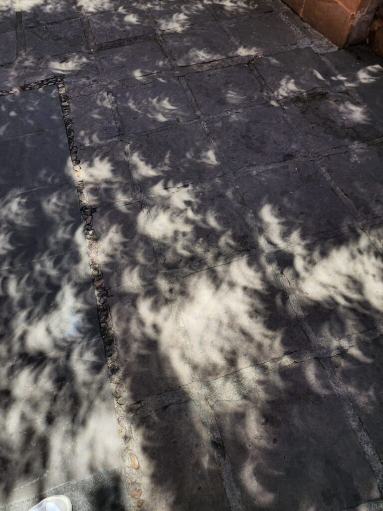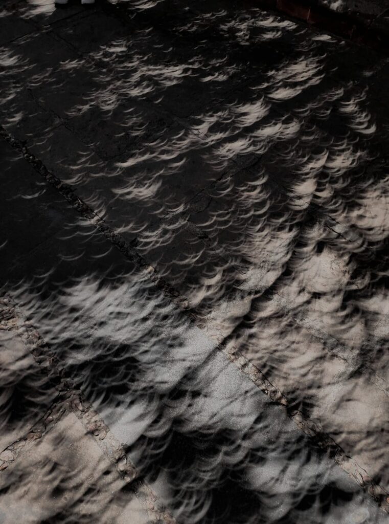 Más allá del oscurecimiento del cielo, los investigadores señalaron que se producen imágenes sorprendentes en las sombras proyectadas por los árboles. En el suelo o sobre las hojas se pueden observar pequeños discos solares, conocidos como “lunitas”, o anillos luminosos, dependiendo del tipo de eclipse. Este fenómeno ocurre porque los espacios entre las hojas y ramas funcionan como diminutas aperturas que proyectan la imagen del Sol en el suelo, de manera similar al principio de una cámara estenopeica.