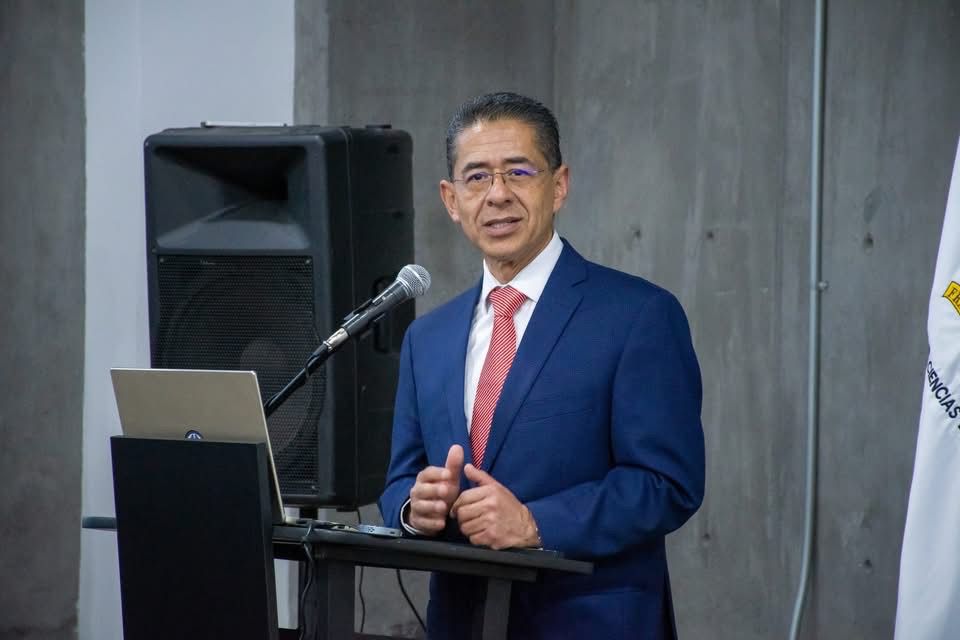 Durante su intervención, señaló que la ingeniería biomédica abarca áreas como prótesis, órtesis, mantenimiento hospitalario, bioinformática, análisis celular y manipulación genética, entre otras.