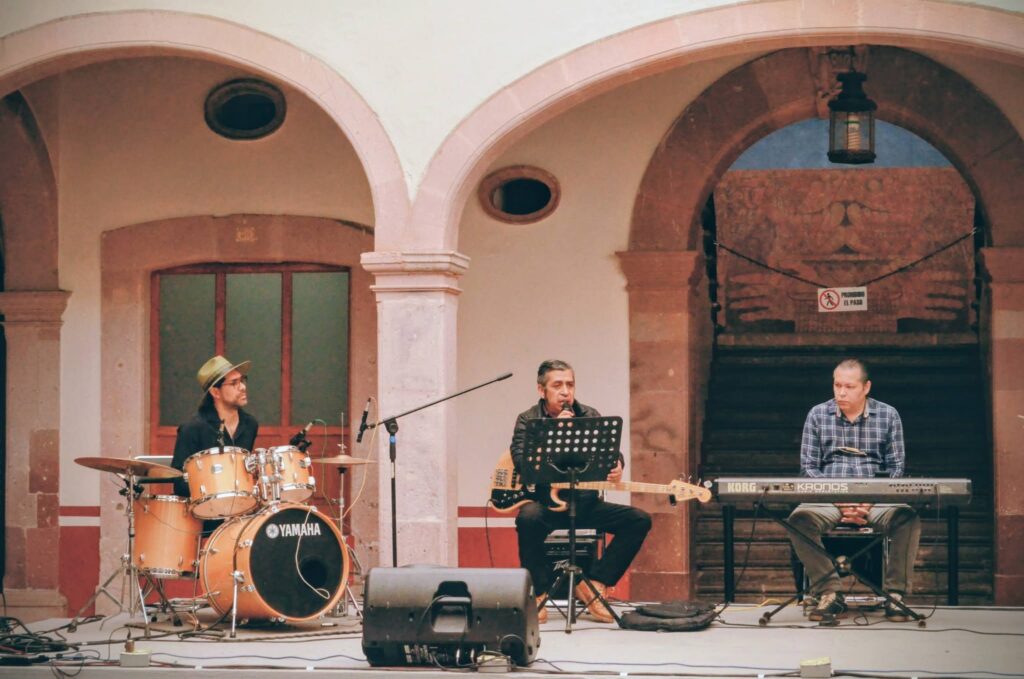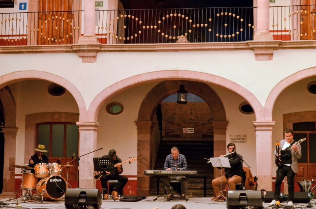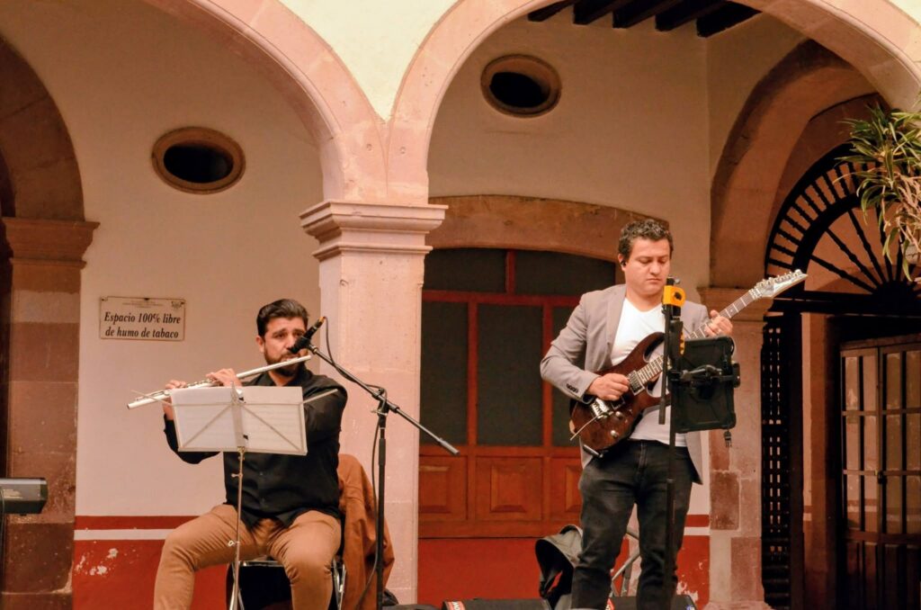 La agrupación zacatecana “La Tierra” fue la encargada de abrir este foro con un concierto titulado Sincronías, un recorrido sonoro que fusiona jazz, rock progresivo, funk y folklore. El sexteto, integrado por Rebeca Sánchez, Federico Morales, Alan Bazavilvazo, Miguel De Ávila, Emerson Dueñez y Samuel R. Escobar, ofreció composiciones originales como “Ensueño”, “Relente” y “Fractal”, mostrando la capacidad de la música para dialogar entre tradición e innovación.