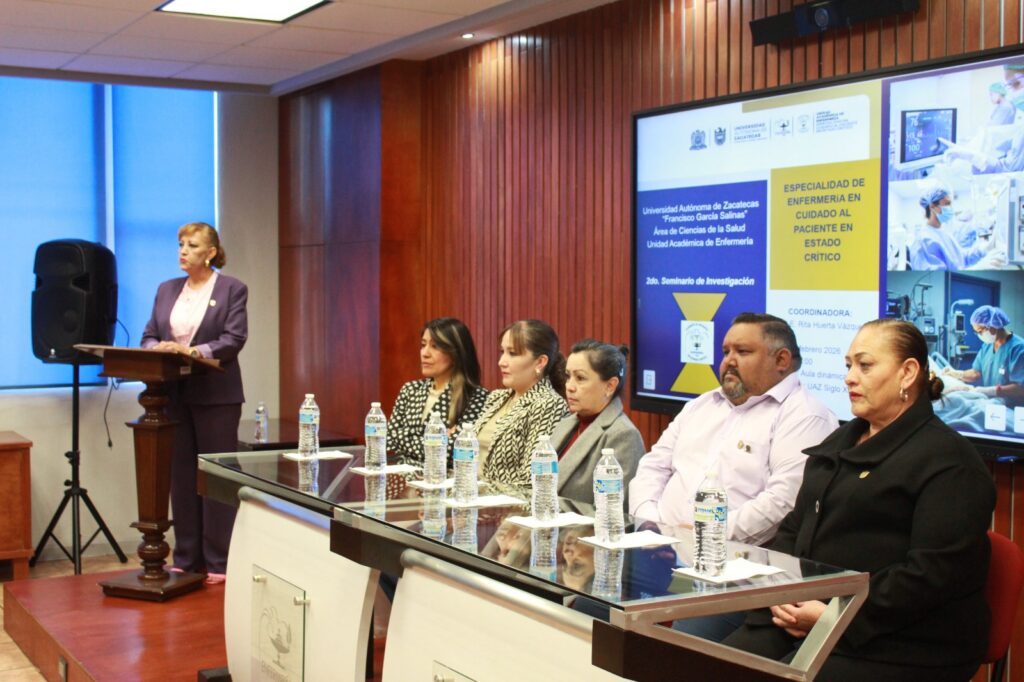 Con la participación de los 30 alumnos de la Especialidad de Enfermería en Cuidado de Pacientes en Estado Crítico, autoridades de la Unidad Académica de Enfermería (UAE) de la Universidad Autónoma de Zacatecas (UAZ), inauguraron el Segundo Seminario de Investigación, espacio en el que el estudiantado presentó los proyectos desarrollados durante su formación.