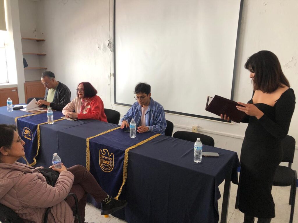 Cabe destacar la participación de la docente investigadora Arlett Cancino Vásquez (UAL, UAZ), quien fungió como lectora junto con Ilse Díaz Márquez (Departamento de Letras, UAA) en la sesión dedicada al trabajo de Bardo Alberto Garma Méndez.