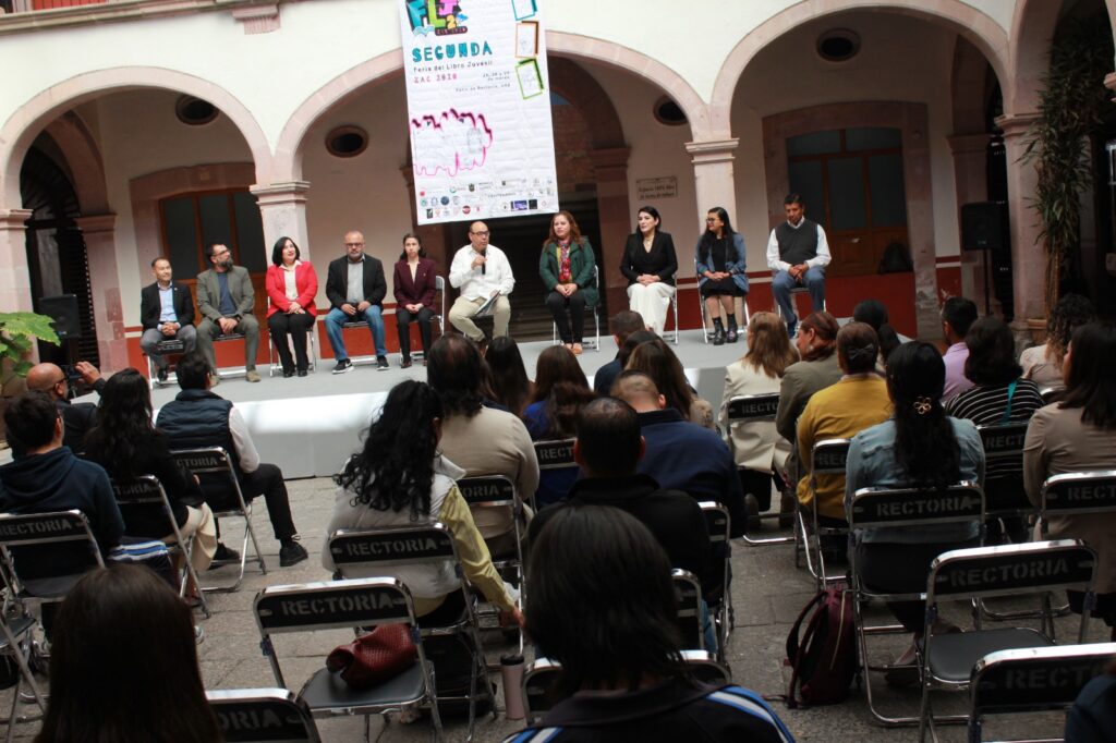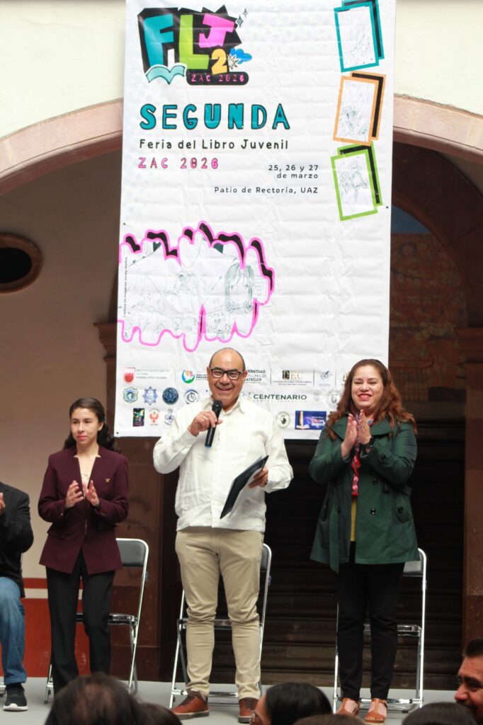 Con el objetivo de fomentar el hábito de la lectura y la escritura entre las nuevas generaciones, la Universidad Autónoma de Zacatecas (UAZ), a través del Doctorado en Estudios Contemporáneos (DEC), la Unidad Académica de Letras (UAL), la Coordinación de Bibliotecas y la organización de la Feria del Libro Juvenil, inauguraron formalmente la Segunda Edición de la Feria del Libro Juvenil 2026 en el patio de Rectoría de la UAZ.