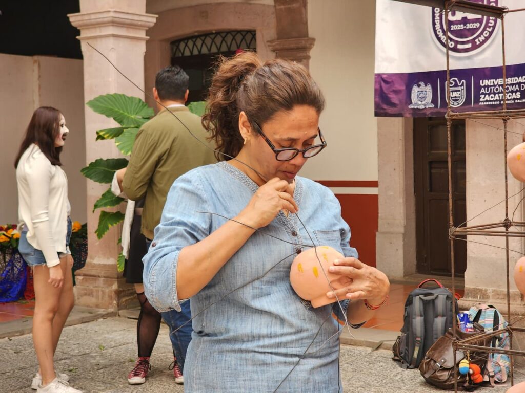 Como parte de las actividades del tradicional Festival de Día de Muertos organizado por el Gobierno del Estado, la Licenciatura en Artes de la Universidad Autónoma de Zacatecas (UAZ) participó por tercer año consecutivo en la decoración de espacios emblemáticos del Centro Histórico. En esta edición, los alumnos y docentes de la Academia de Artes Visuales fueron los encargados de intervenir la fachada del edificio de Rectoría.