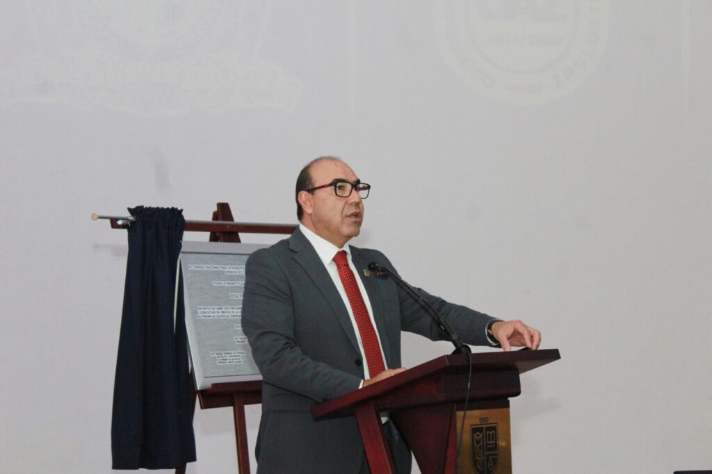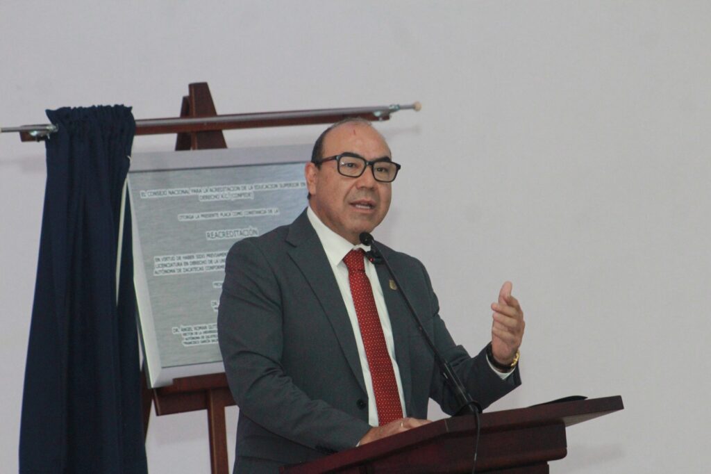 En su mensaje, enfatizó que este proceso valida el compromiso de la universidad con la mejora continua: “Cuando hablamos de esta reacreditación, hablamos de la confirmación y el reconocimiento de un estándar de calidad. Y ese estándar no lo define la universidad, ni la Unidad Académica de Derecho, ni únicamente los docentes. Este estándar es evaluado y rubricado por pares externos”.