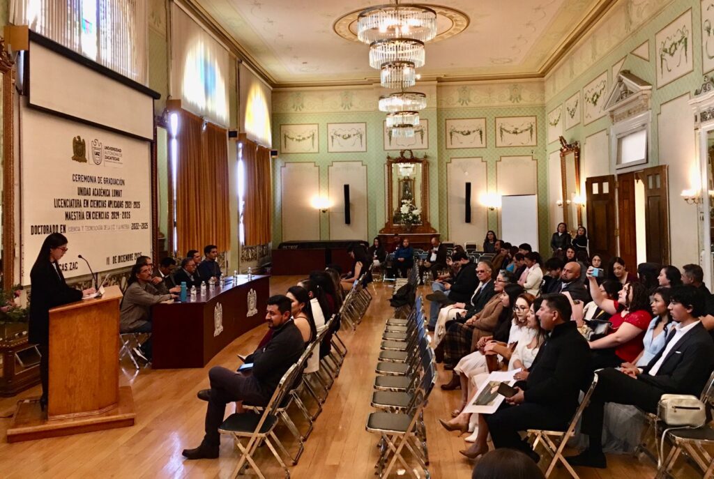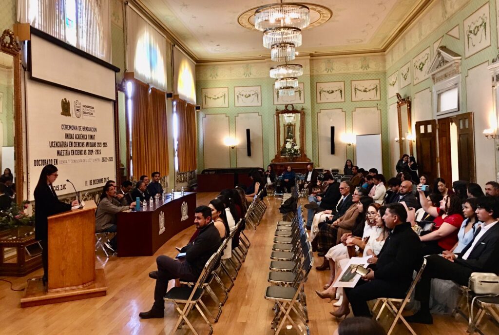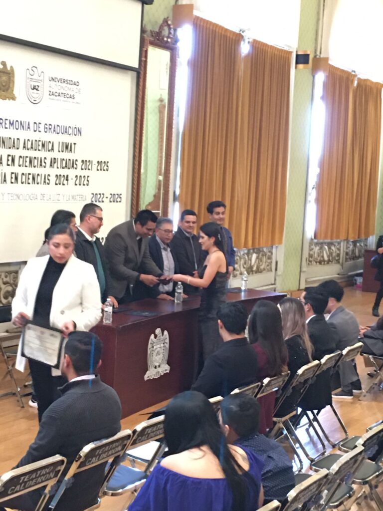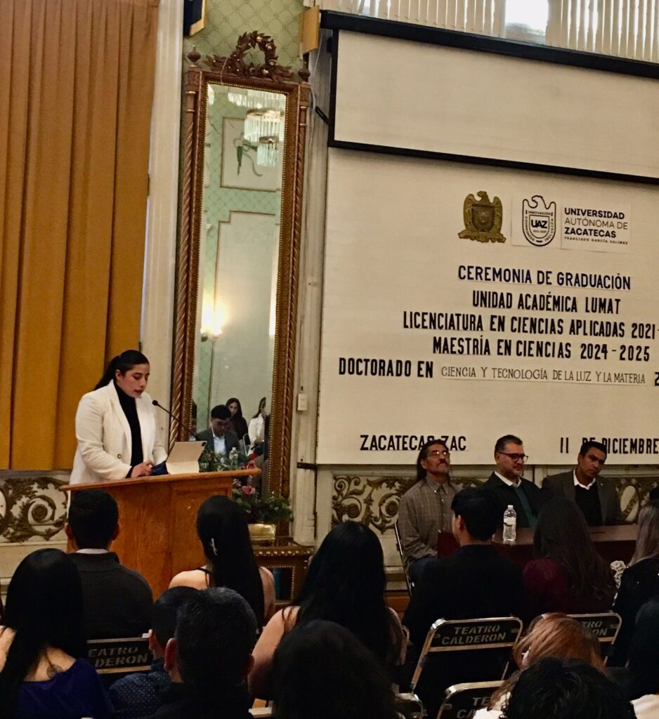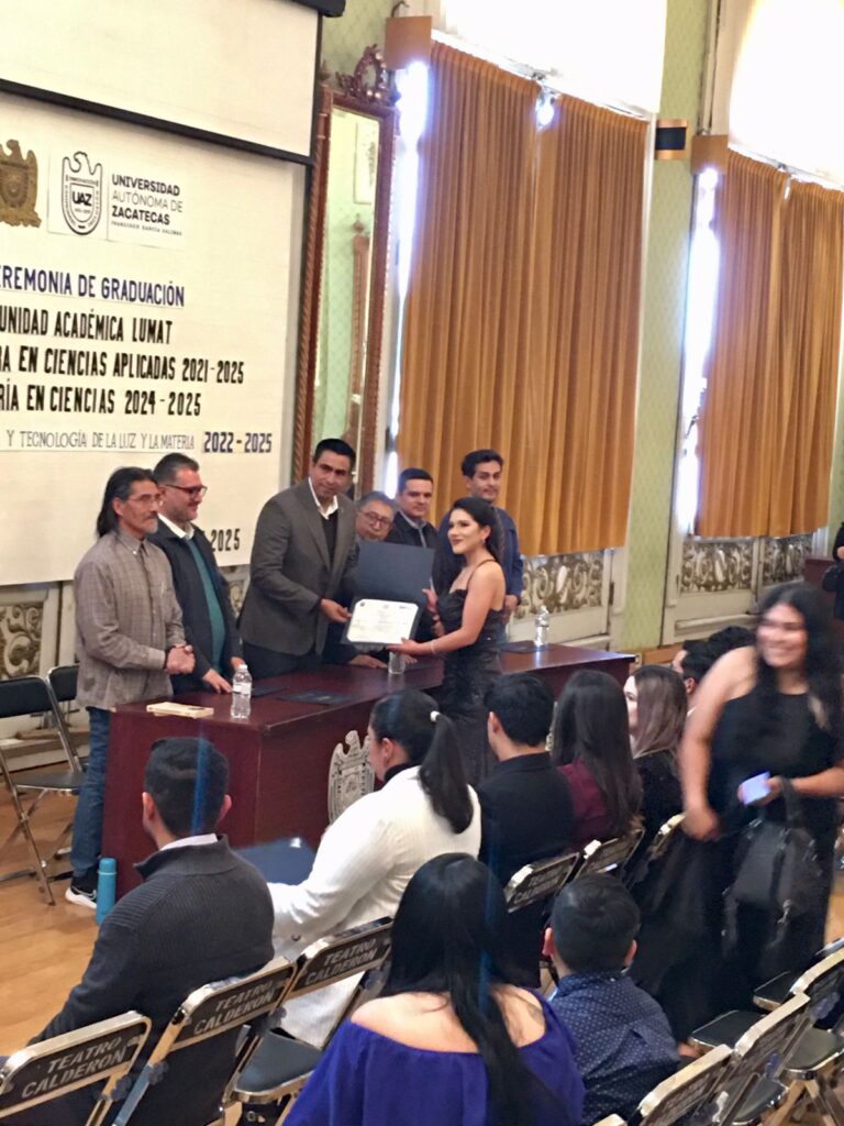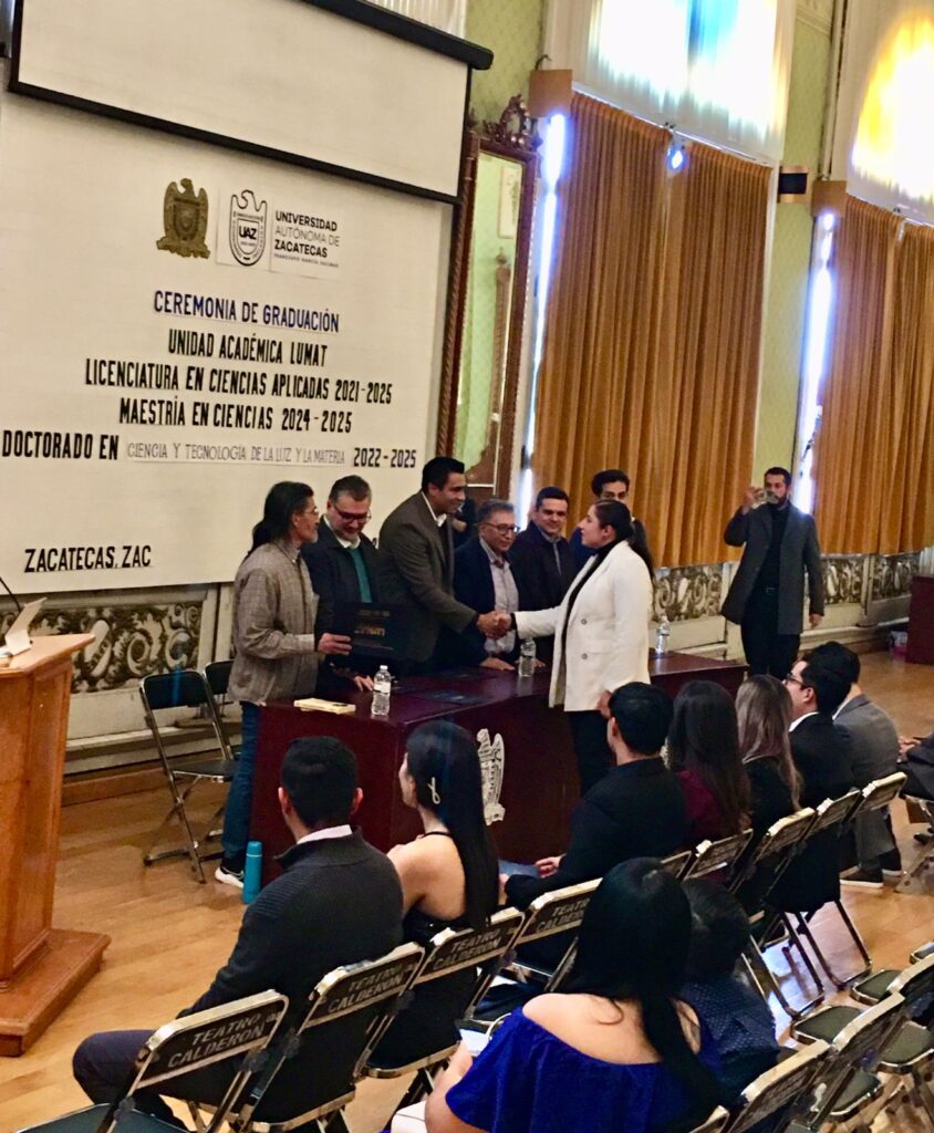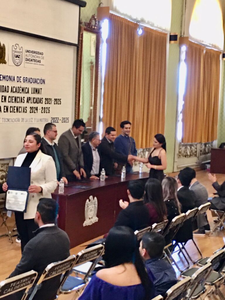 En el emblemático Foyer del Teatro Fernando Calderón la Unidad Académica de Ciencia y Tecnología de la Luz y la Materia (LUMAT) de la Universidad Autónoma de Zacatecas (UAZ), llevó a cabo la ceremonia de graduación de las generaciones concluyentes de sus programas de Licenciatura en Ciencias Aplicadas, Maestría en Ciencias y Doctorado en Ciencia y Tecnología de la Luz y la Materia.