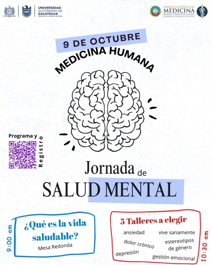 En el marco del Día Mundial de la Salud Mental, que se celebra el próximo 10 de octubre, la Unidad Académica de Medicina Humana y Ciencias de la Salud (UAMHyCS) de la Universidad Autónoma de Zacatecas (llevará a cabo la Jornada de Salud Mental, así lo expuso el director Héctor Rosales González.