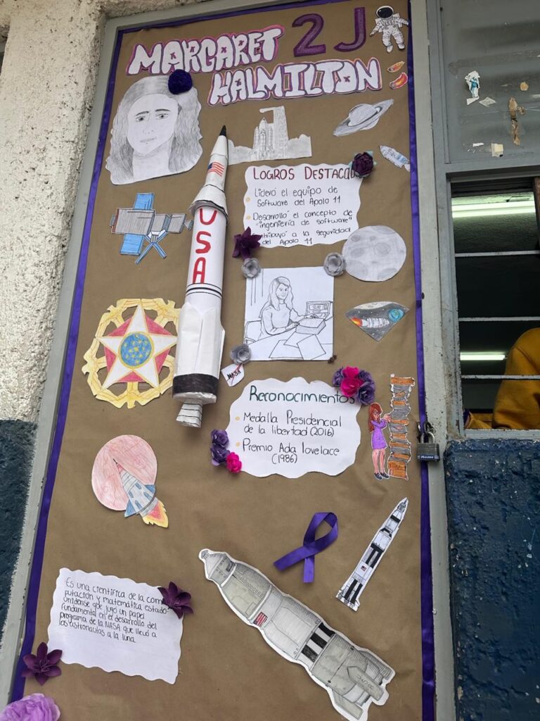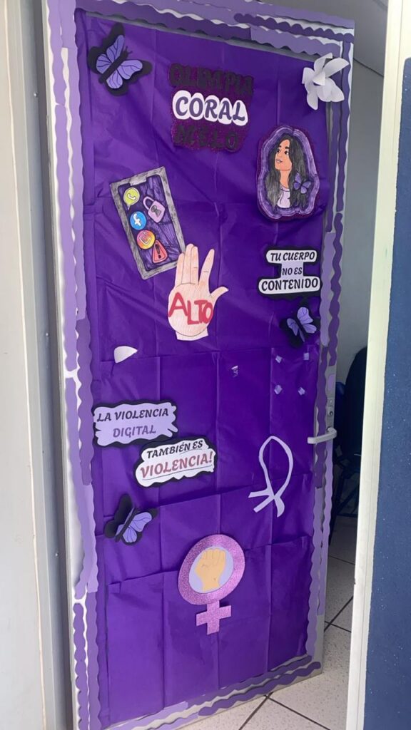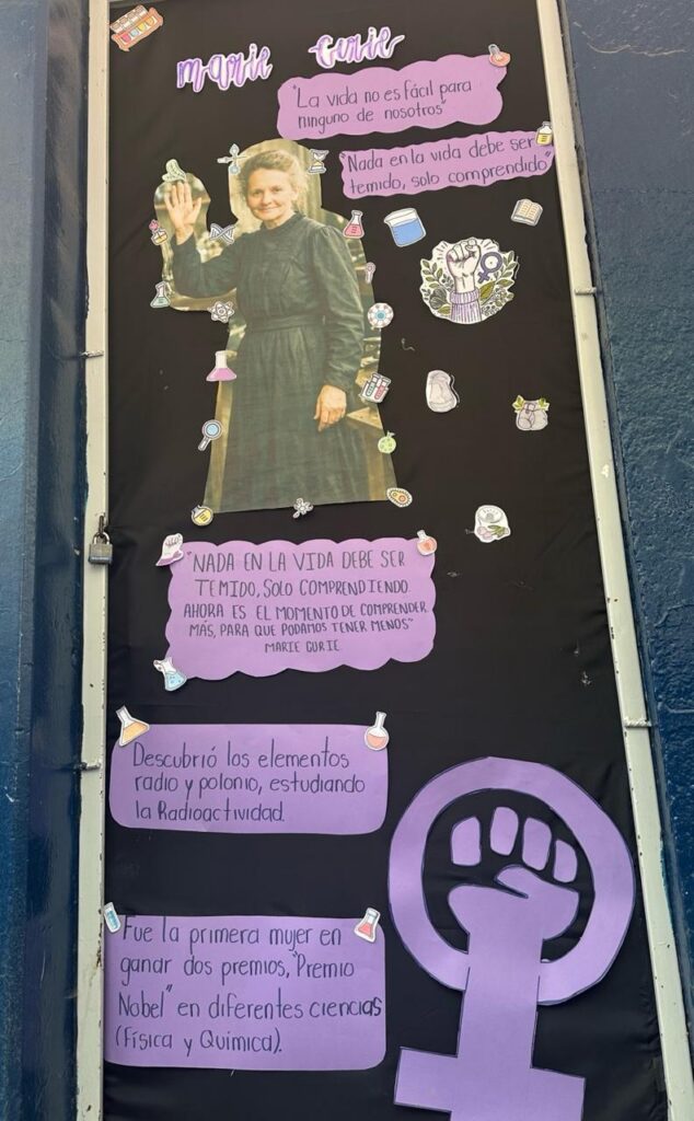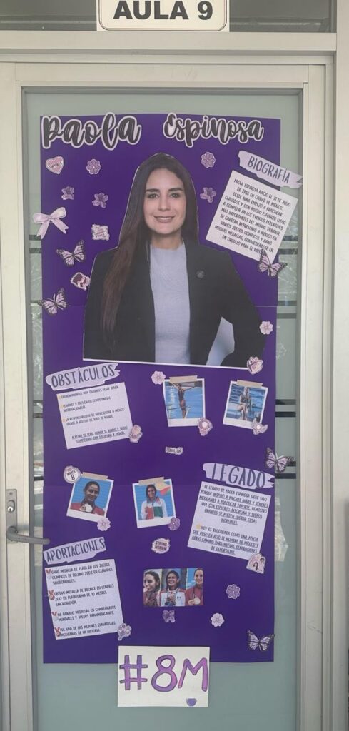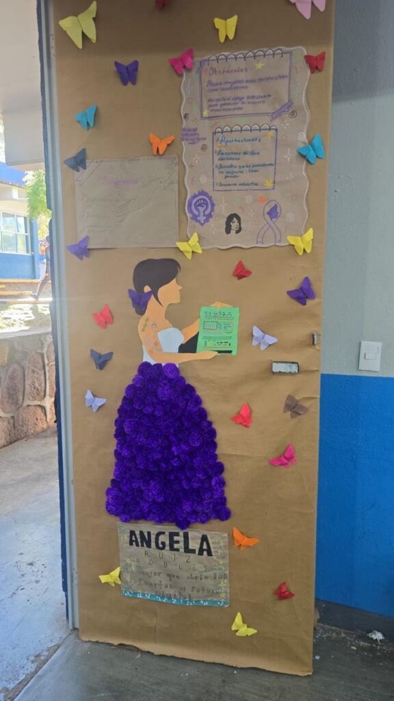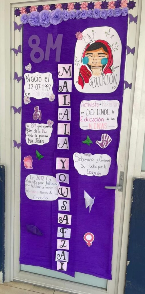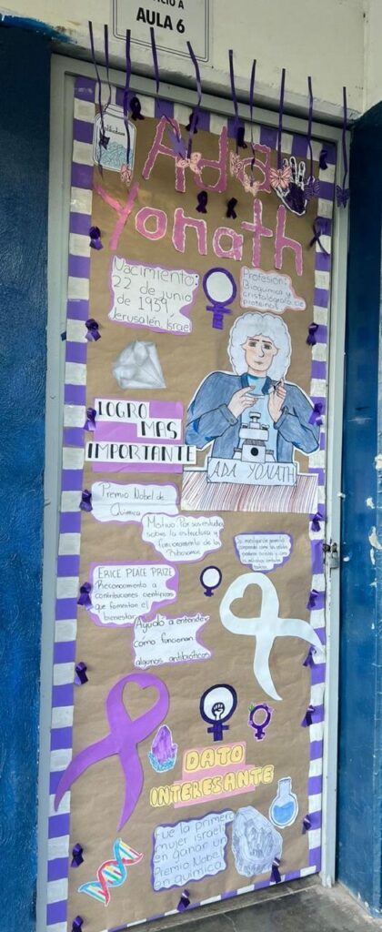 La actividad convocó a 27 grupos de distintos semestres, quienes intervinieron de manera creativa las puertas de sus salones con información y materiales sobre mujeres que han transformado la historia en ámbitos sociales, políticos, deportivos, artísticos, científicos y tecnológicos.