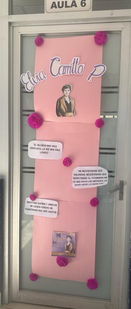 La actividad convocó a 27 grupos de distintos semestres, quienes intervinieron de manera creativa las puertas de sus salones con información y materiales sobre mujeres que han transformado la historia en ámbitos sociales, políticos, deportivos, artísticos, científicos y tecnológicos.
