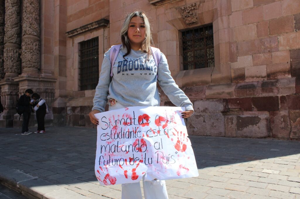 Entre mantas, carteles y consignas, los estudiantes hicieron un llamado a no olvidar el pasado para evitar repetirlo. En el trayecto también mostraron solidaridad con diversas luchas actuales: denunciaron el genocidio en Palestina, exigieron la defensa de los derechos de las mujeres, acompañaron la causa de las madres buscadoras y recordaron a los 43 normalistas de Ayotzinapa, víctimas de desaparición forzada.