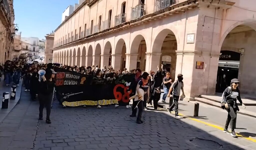 “¡2 de octubre no se olvida!”, resonó esta mañana por las calles de Zacatecas cuando cientos de estudiantes de la Universidad Autónoma de Zacatecas (UAZ) marcharon para recordar la matanza de Tlatelolco ocurrida en 1968. A 57 años de aquel episodio en el que la Plaza de las Tres Culturas se tiñó de sangre, los universitarios caminaron en memoria de quienes fueron asesinados por alzar la voz contra el autoritarismo.