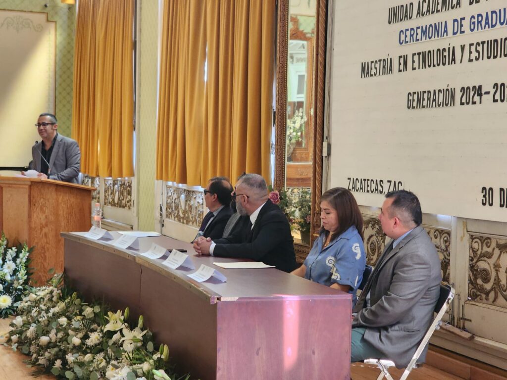 Al respecto, el secretario académico de la UAZ, Hans Hiram Pacheco García, destacó que la graduación de la primera generación de la Maestría en Etnología y Estudios Comunitarios representa un hecho de gran relevancia, al tratarse de un programa que reafirma el papel central de las humanidades, la antropología y la etnología en la vida universitaria, particularmente en las universidades públicas.