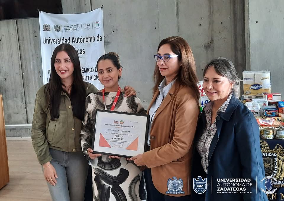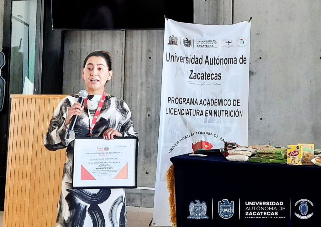 El programa académico de la Licenciatura en Nutrición de la Universidad Autónoma de Zacatecas (UAZ), realizó la entrega de alimentos no perecederos al Banco de Alimentos de Zacatecas A.C., como parte de la colecta organizada en conmemoración del Día Mundial de la Alimentación 2025.
