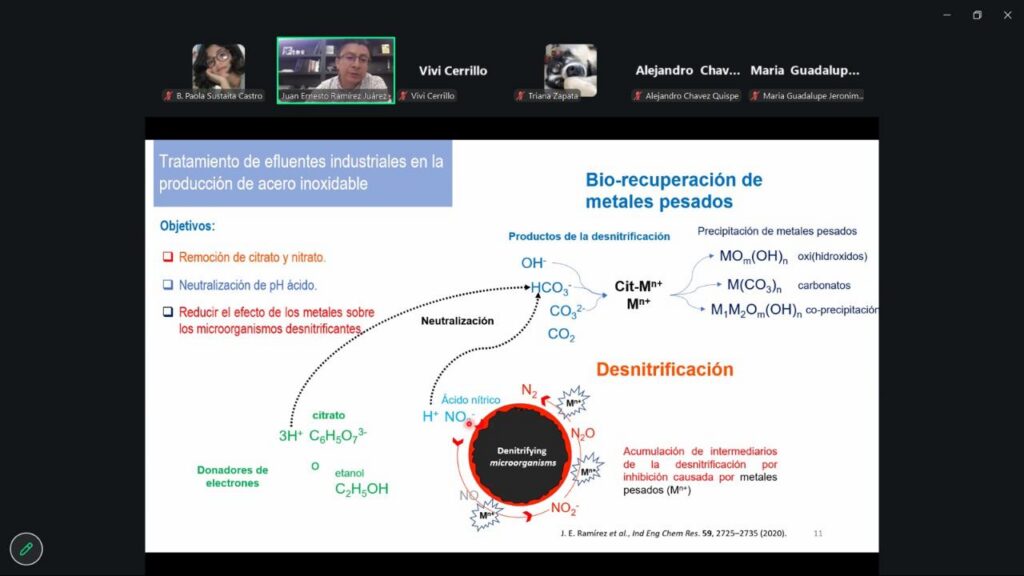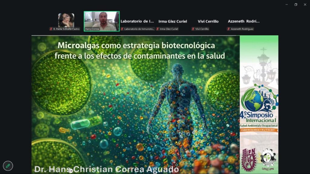 Posteriormente, el investigador Juan Ernesto Ramírez Juárez, de la UAZ, expuso “Metales pesados en efluentes de la industria metalúrgica: tratamiento y reuso potencial”, y finalmente el investigador Hans Christian Correa Aguado, del IPN-Zacatecas, cerró con “Microalgas como estrategia biotecnológica frente a los efectos de contaminantes en la salud”.