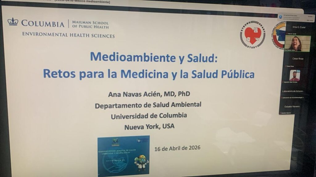 Así, el investigador Oliver Mendoza Cano, de la Universidad de Colima, presentó la conferencia “Desafíos y estrategias de mitigación del cambio climático: un enfoque socioambiental”; mientras que el investigador Gabriel Alejandro Real Ornelas, del IMSS, expuso “Red Nacional de Laboratorios de Salud en el Trabajo y Ambiental: resultados a 4 años de su reingeniería”. A su vez, la investigadora Ana Navas Acien, de la Universidad de Columbia, NY, aportó una visión internacional sobre los retos en salud ambiental.