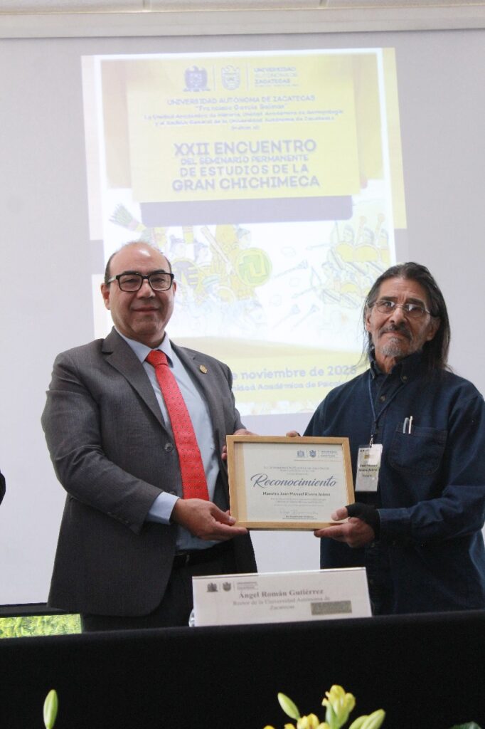 Por su parte, el presidente del Seminario Permanente de Estudios de la Gran Chichimeca (SEPECH), Andrés Fábregas Puig, expresó su profundo agradecimiento por la generosidad de la rectoría y de toda la comunidad universitaria, afirmando que el seminario busca reivindicar la historia de los grupos chichimecas.