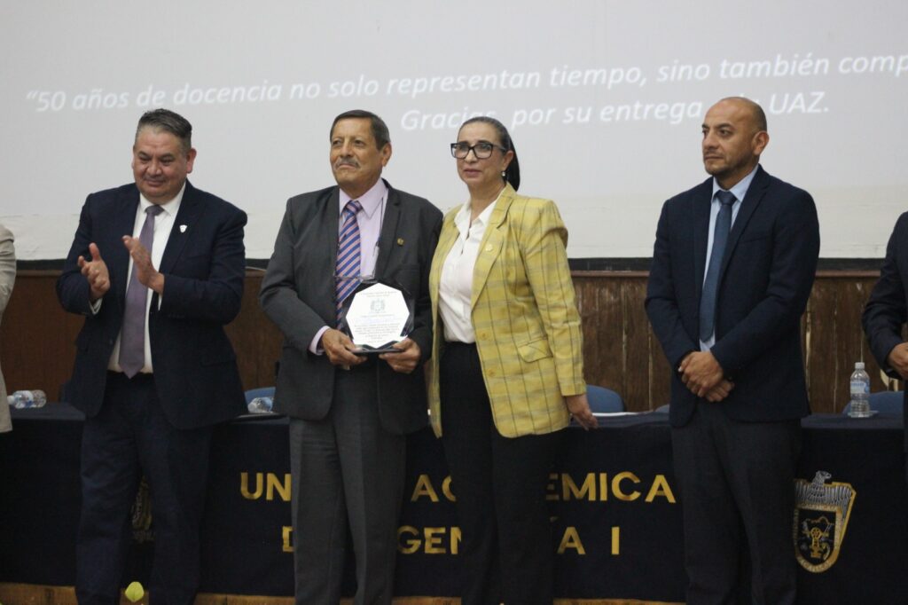 Por su esfuerzo, empeño, entusiasmo y dedicación a lo largo de cinco décadas, la Universidad Autónoma de Zacatecas (UAZ) rindió un reconocimiento al Dr. Alejandro López Ibarra, docente de la Unidad Académica de Ingeniería I, cuya labor ha sido fundamental en la formación de generaciones y en el desarrollo académico de la institución.