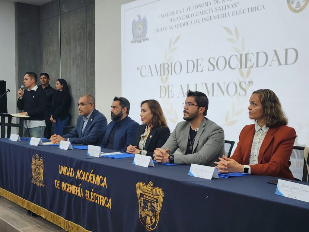 En significativo acto celebrado en las instalaciones de la Unidad Académica de Ingeniería Eléctrica (UAIE) de la Universidad Autónoma de Zacatecas, se llevó a cabo la toma de protesta de la nueva Sociedad de Alumnos, conformada por representantes de los 11 programas académicos que integran dicha unidad.